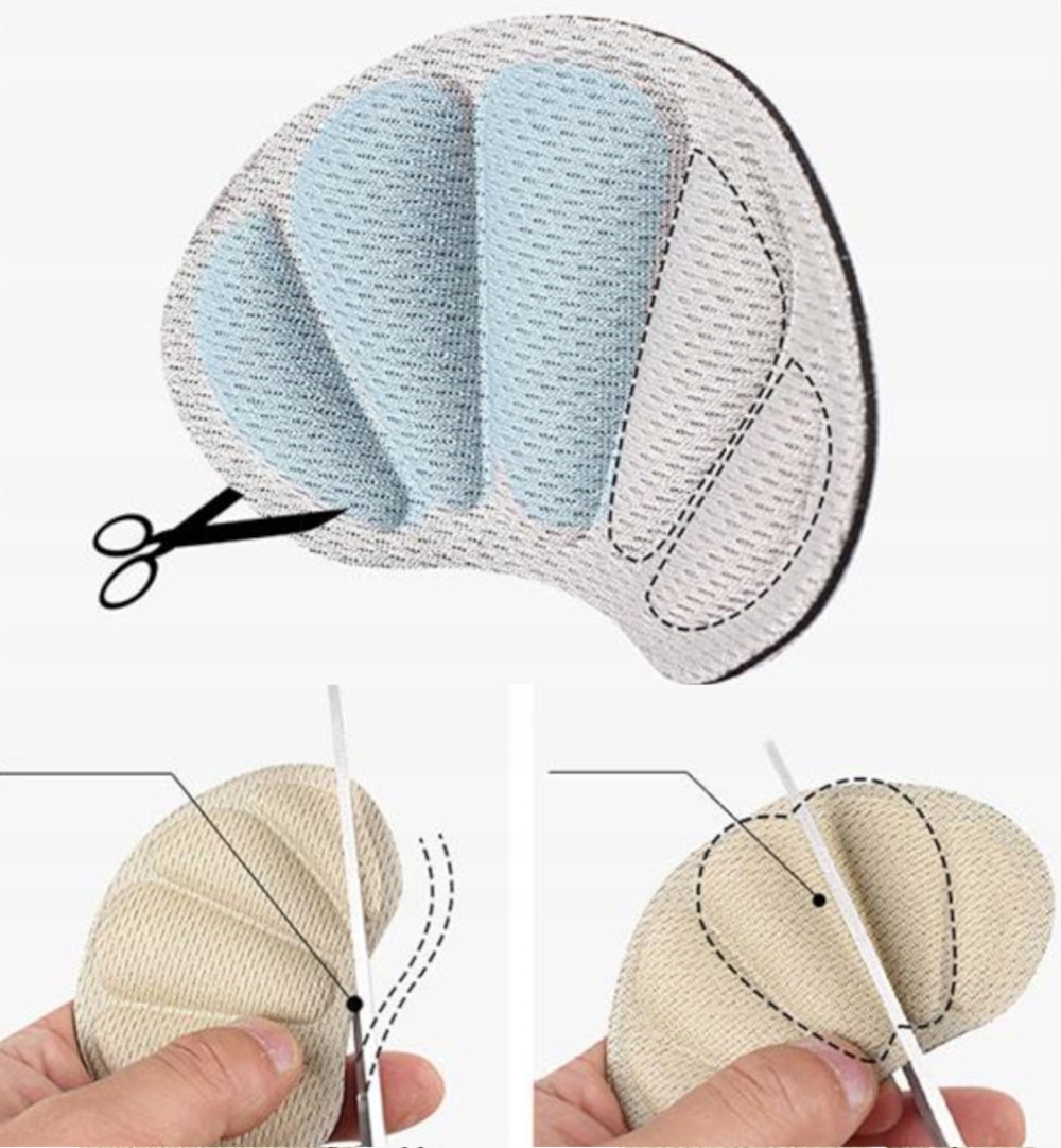 Они доступны в универсальном размере, приклеиваются с внутренней стороны. обуви, они не смещаются при ходьбе, достаточно оторвать защитную пленку и поместить их в заднюю часть обуви.