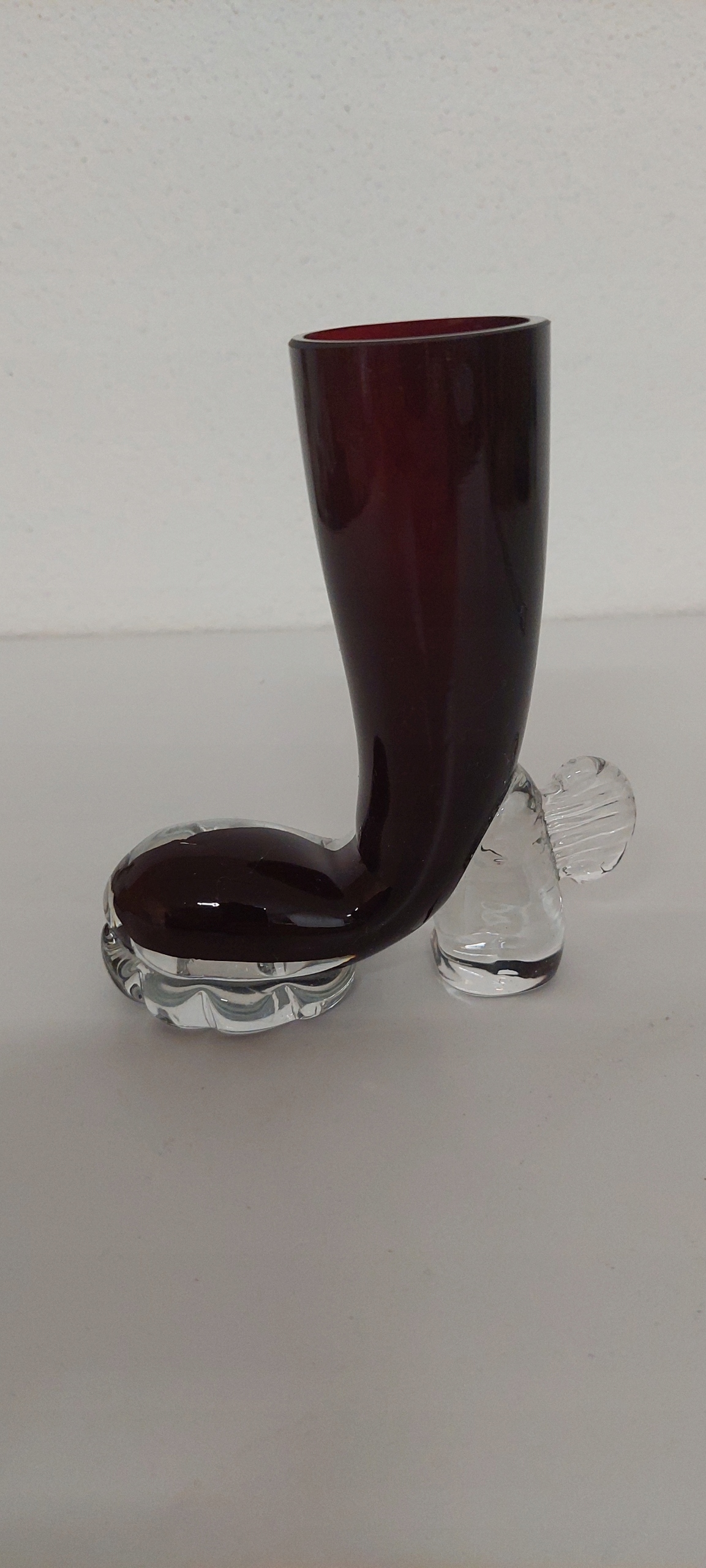 Стекло в очень хорошем состоянии с высотой размеров 11 см, диаметром чаши 3,5 см, длина обуви 10 см.
