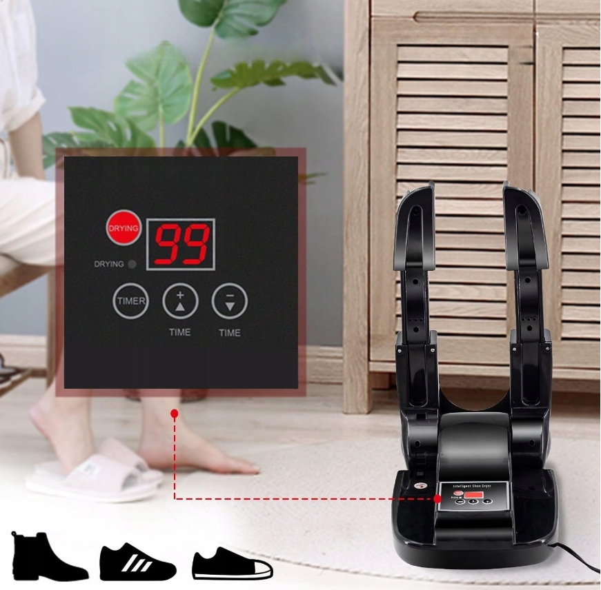 - . Удаляет влагу, а дезинфекция озона активный кислород устраняет микроорганизмы, освежая внутреннюю часть обуви. После завершения обувь идеально сухая, свежая и дезинфицированная.