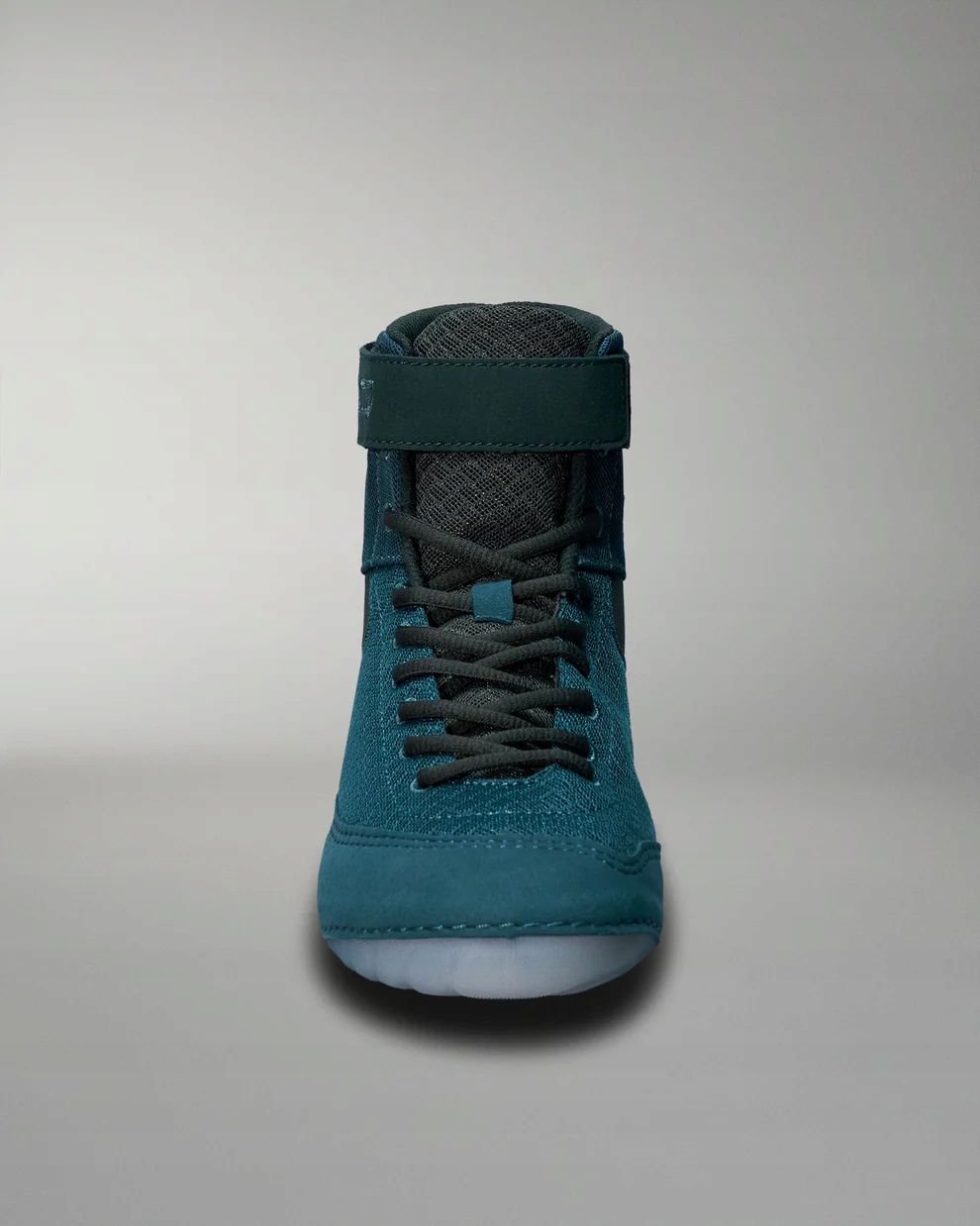 Внешняя единственная низкая профили снижает вес, поддерживая адгезию и гибкость. Боковой рисунок адгезии был разработан специально для борцов, которые используют быстрое ускорение вперед