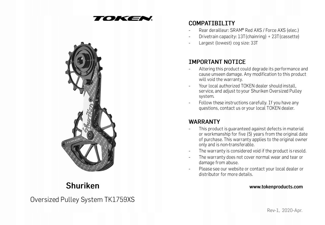 Токен является производителем с обширным опытом в производстве компонентов велосипеда в высших классах. От поддержки, через колеса, до кругов переключателя - Шурикен - кульминация этих знаний и инноваций.