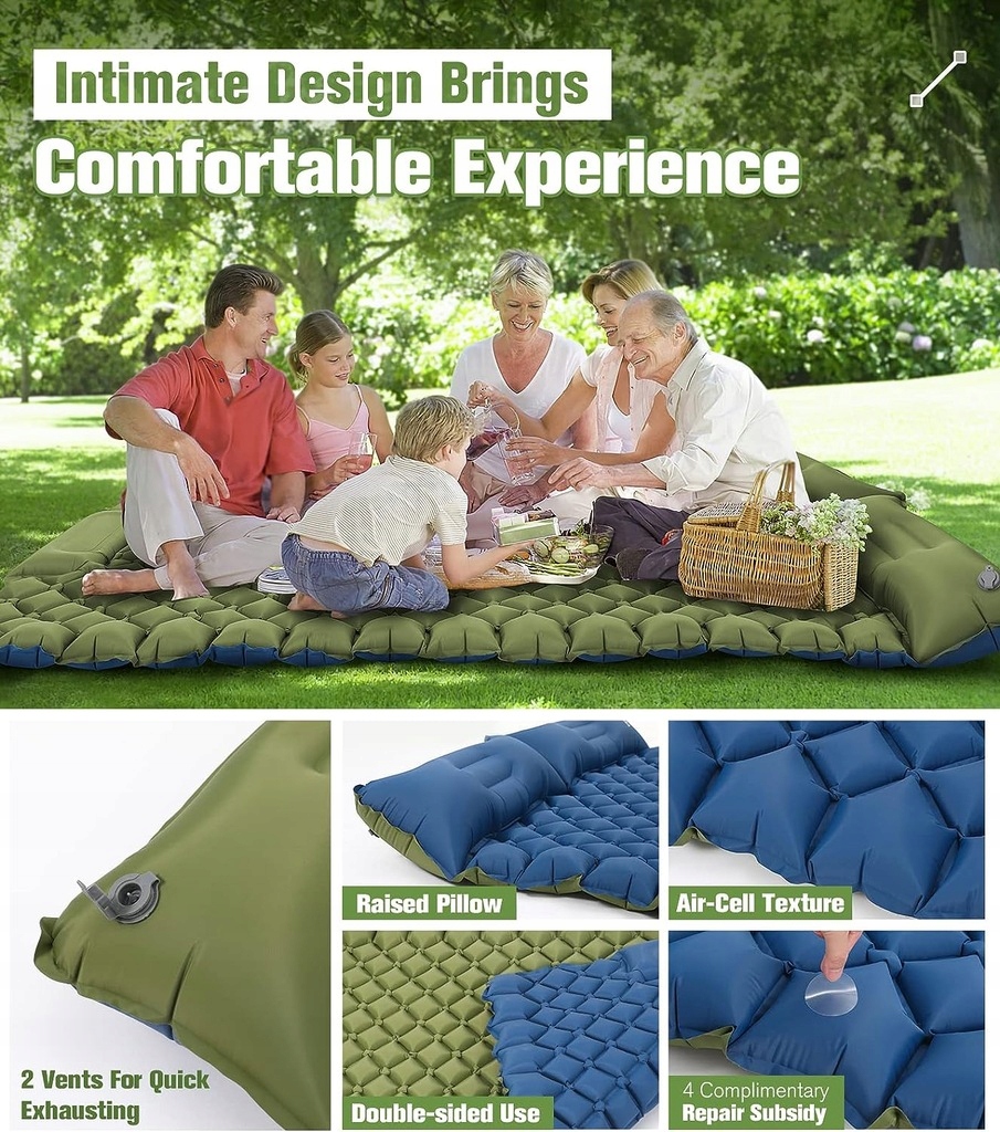 - Матрац для кемпинга для 2 человек с подушкой и насосом под давлением,