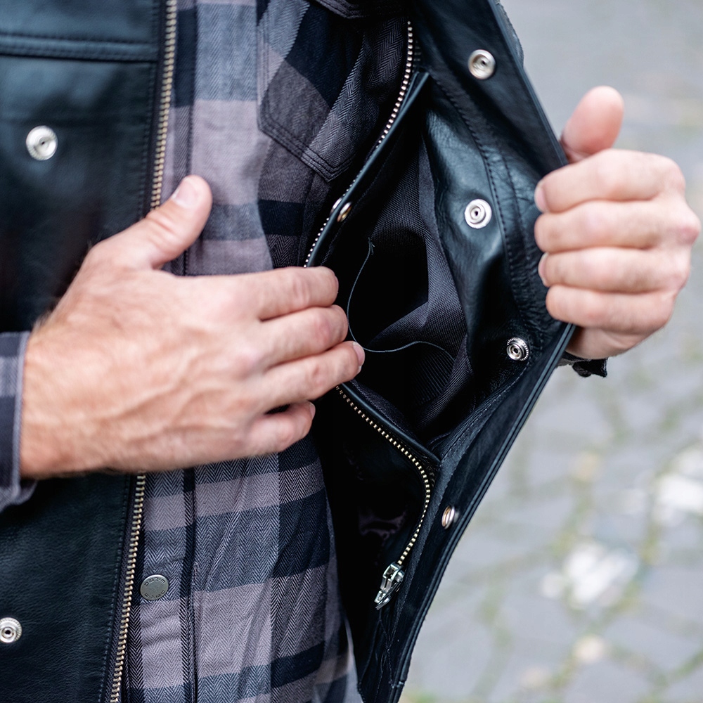 Motorcycle Vest In-Tec Delasola является привлекательной мотоциклетной одеждой, изготовленной из самых высоких качества кожи ковхида. Жилет особенно подходит для катания на вертолетах, но он также отлично подходит для других видов мотоциклов и даже для повседневного ношения - где бы вы ни выделили. Тем не менее, он не играет экстравагантности, вы скорее оцените ее элегантный минимализм. Это позволяет вам использовать свои собственные клубные патчи.