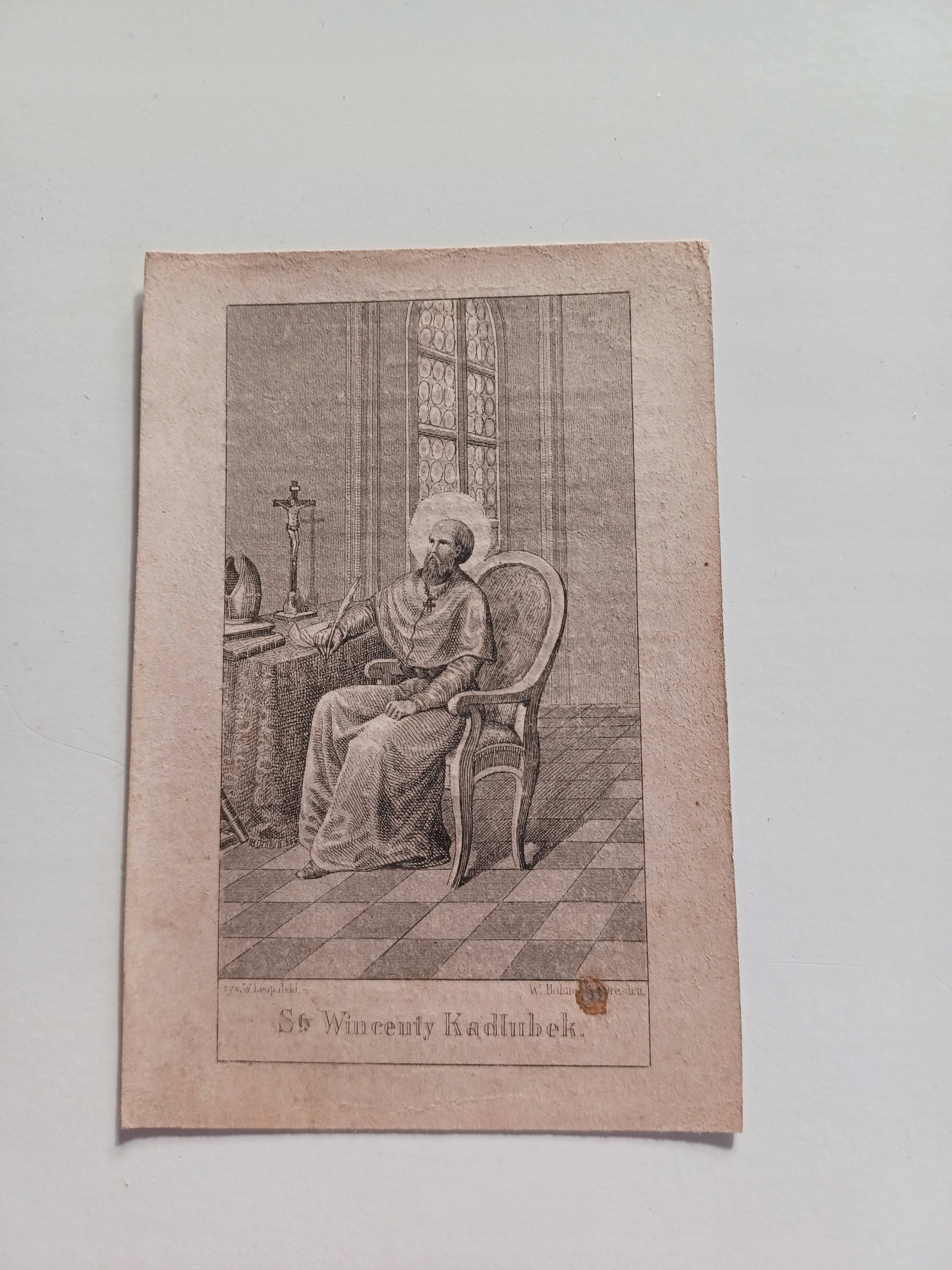 ŚW. WINCENTY KADŁUBEK przedwojenny ŚW. OBRAZEK PAPIER CZERPANY