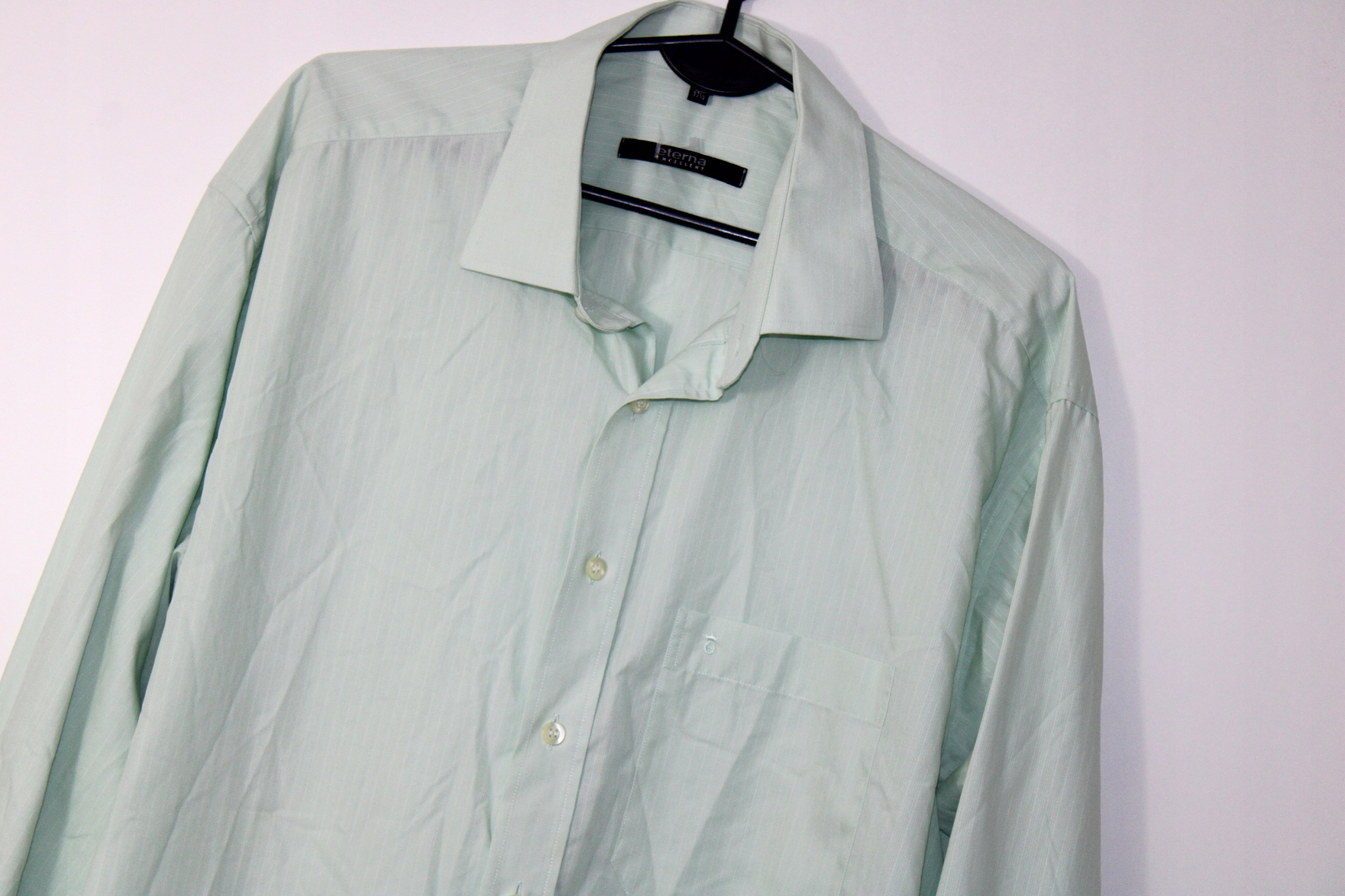 w3 Бавовняна зелена сорочка ETERNA коміром з довгим рукавом 44 см XXL