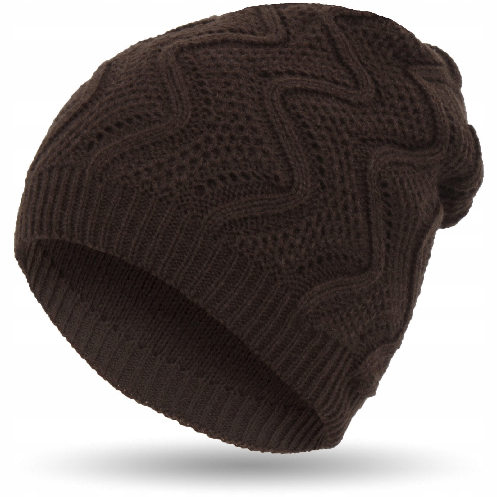W314E DAMSKA CZAPKA ZIMOWA Z DZIANINY brązowa