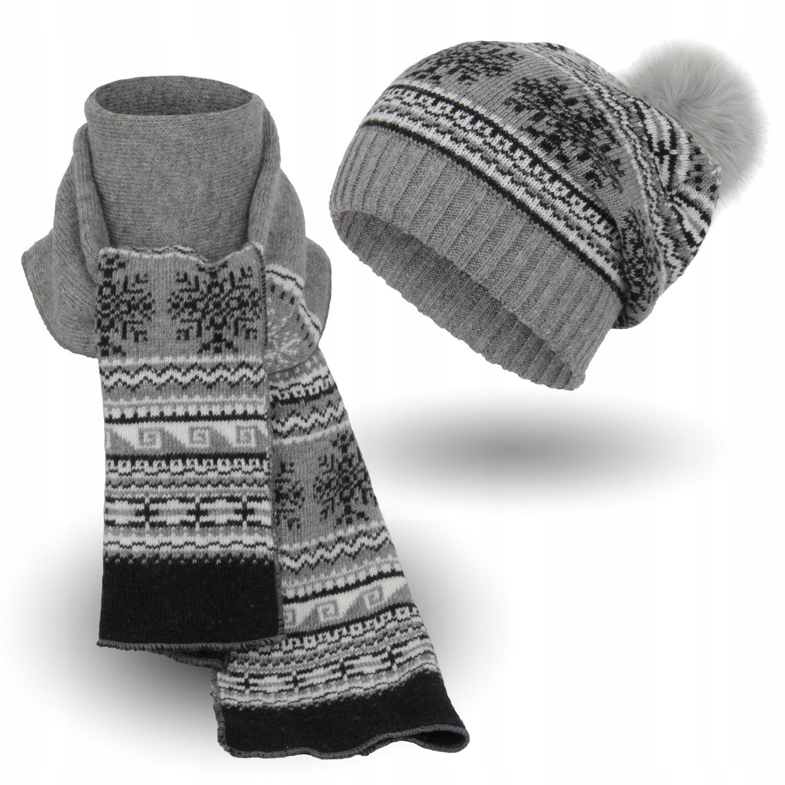 ТЕПЛЫЙ ЗИМНИЙ КОМПЛЕКТ ШАПКА И ШАРФ МОДЕЛЬ: W-322 B - СЕРЫЙ