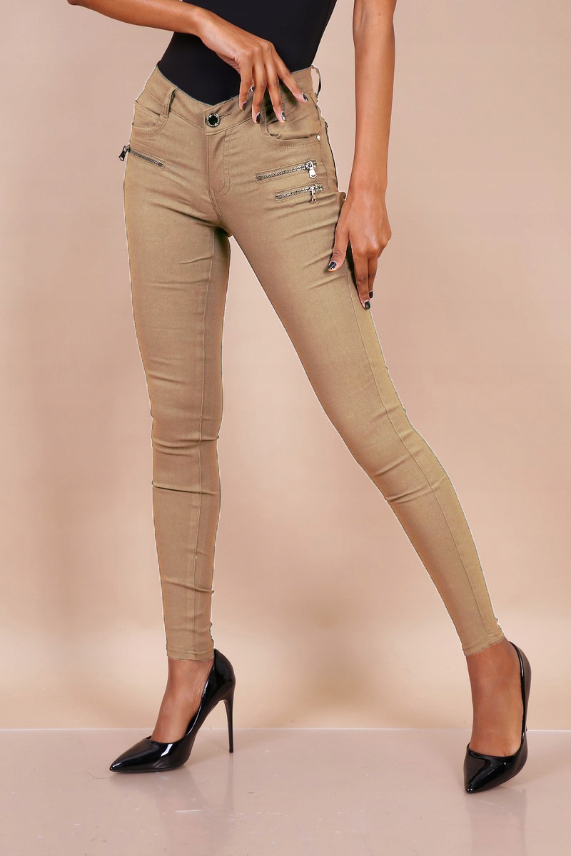 Облегающие брюки, украшенные молниями. Заниженная талия. Эластичный материал, как тонкие джинсы.