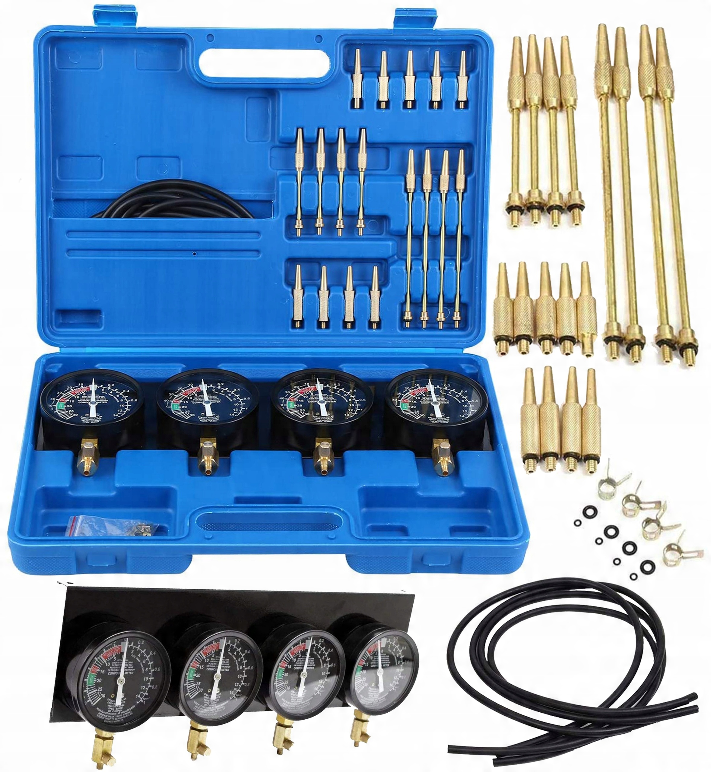 - Этот комплект позволяет синхронизировать значения до 4 карбюраторов, а также корректирует и устанавливает их.