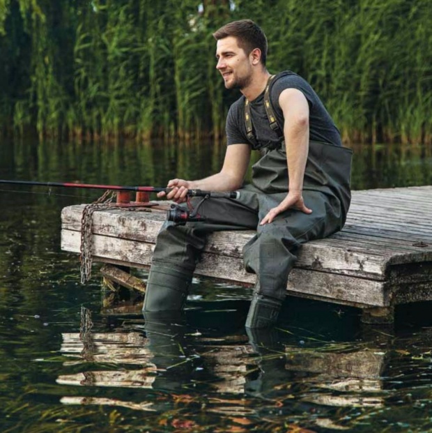 Водонепроницаемые вейдерсы с высококачественными резиновыми сапогами с постоянным подогревом.