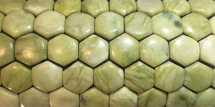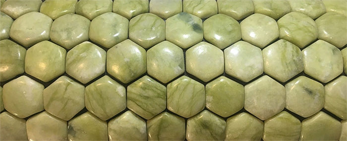 Изделия коллекции Hexagon Natural содержат драгоценные камни нефрита высочайшего качества. Валик обшит эксклюзивной эко-кожей красивого золотистого цвета.