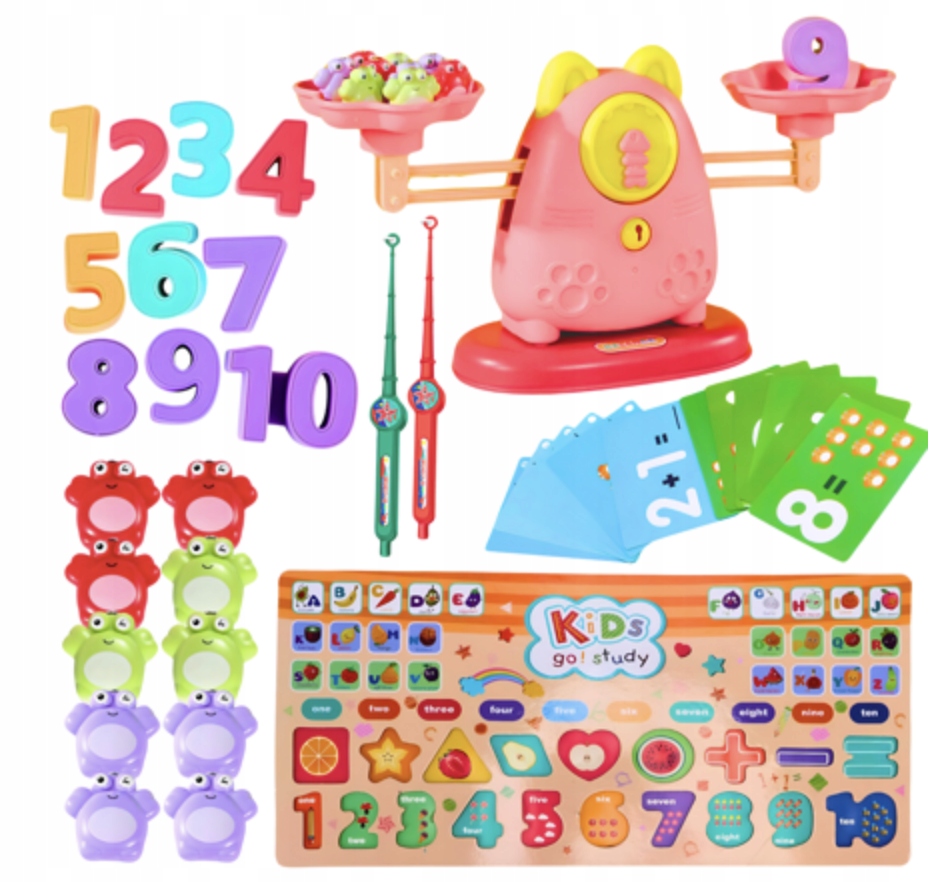 Waga Szalkowa Z Tablicą Kot Wędkowanie Klocki Matematyka Po Angielsku 4w1