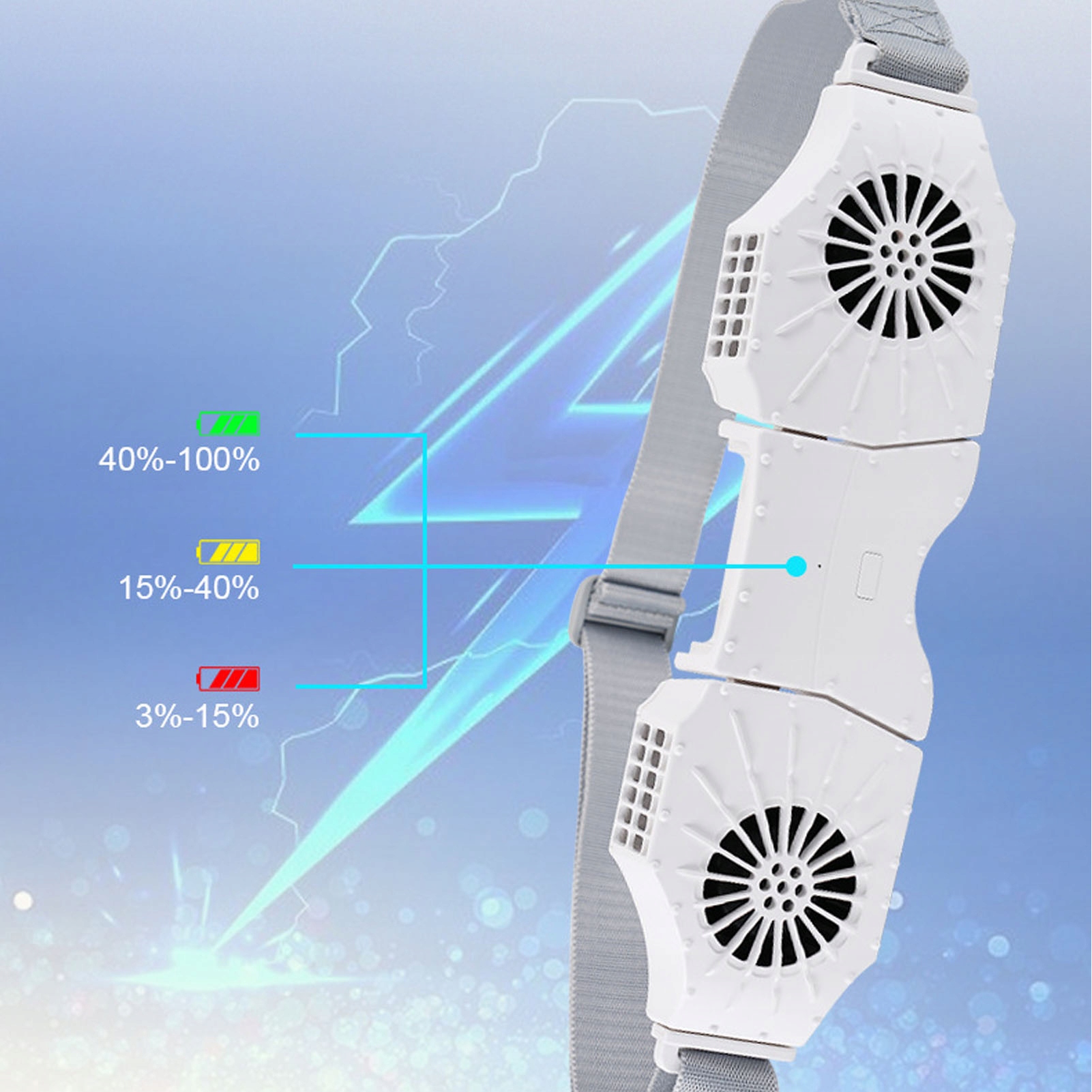 2. Регулируемый и безопасный: носимый вентилятор имеет низкую, среднюю и высокую скорость на выбор. Просторные вентиляционные отверстия со встроенной более безопасной турбиной, более эффективной и безопасной, чем видимые лопасти вентилятора.