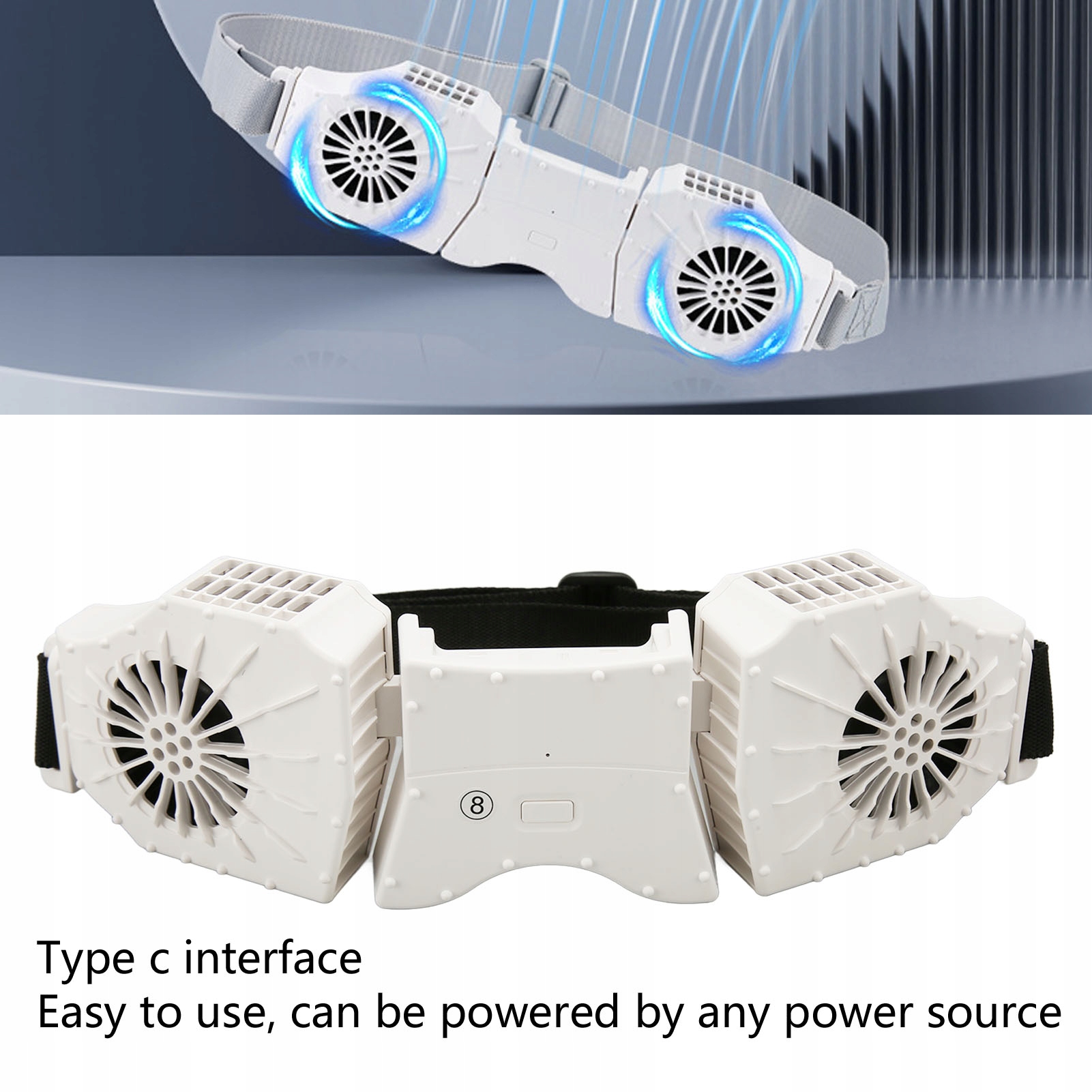 Поясной вентилятор, 3 скорости, 8000 мАч, 5 В, 2 А, тип C, быстрая зарядка 0R