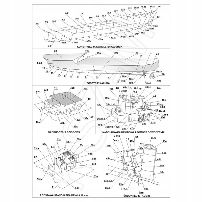На модели изображен польский эсминец ORP Krakowiak (тип «Охота II») времен Второй мировой войны. Модель в комплектации 1942 года. Модель средней сложности.