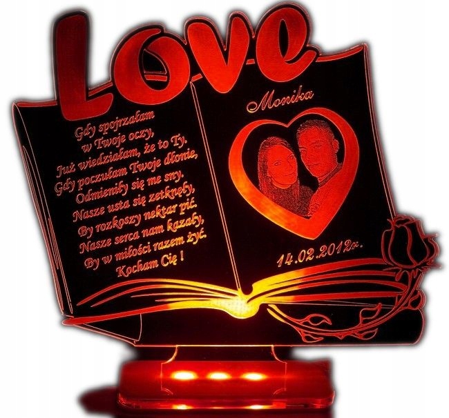 WALENTYNKI PODŚWIETLANA STATUETKA Z ZDJĘCIEM LED