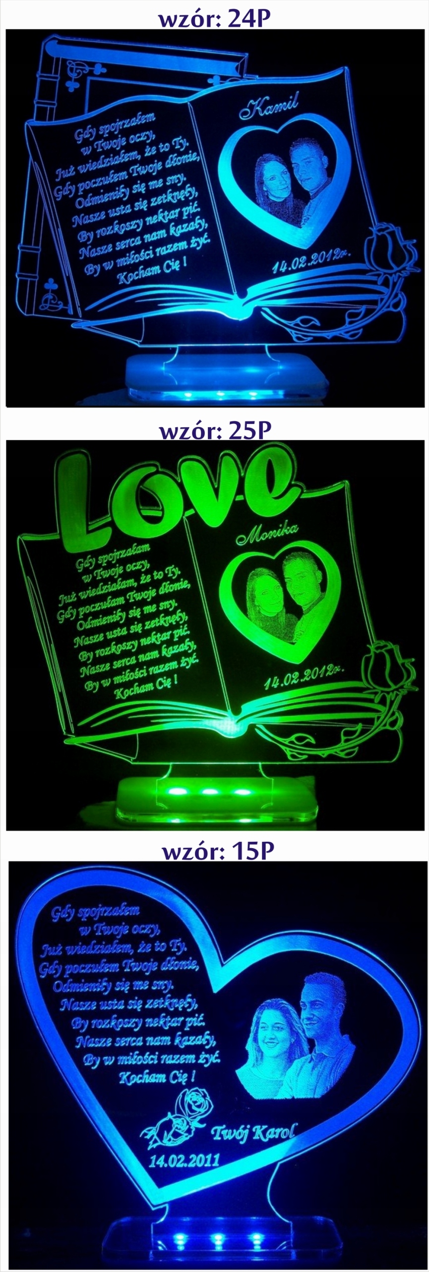 WALENTYNKI PODŚWIETLANA STATUETKA Z ZDJĘCIEM LED