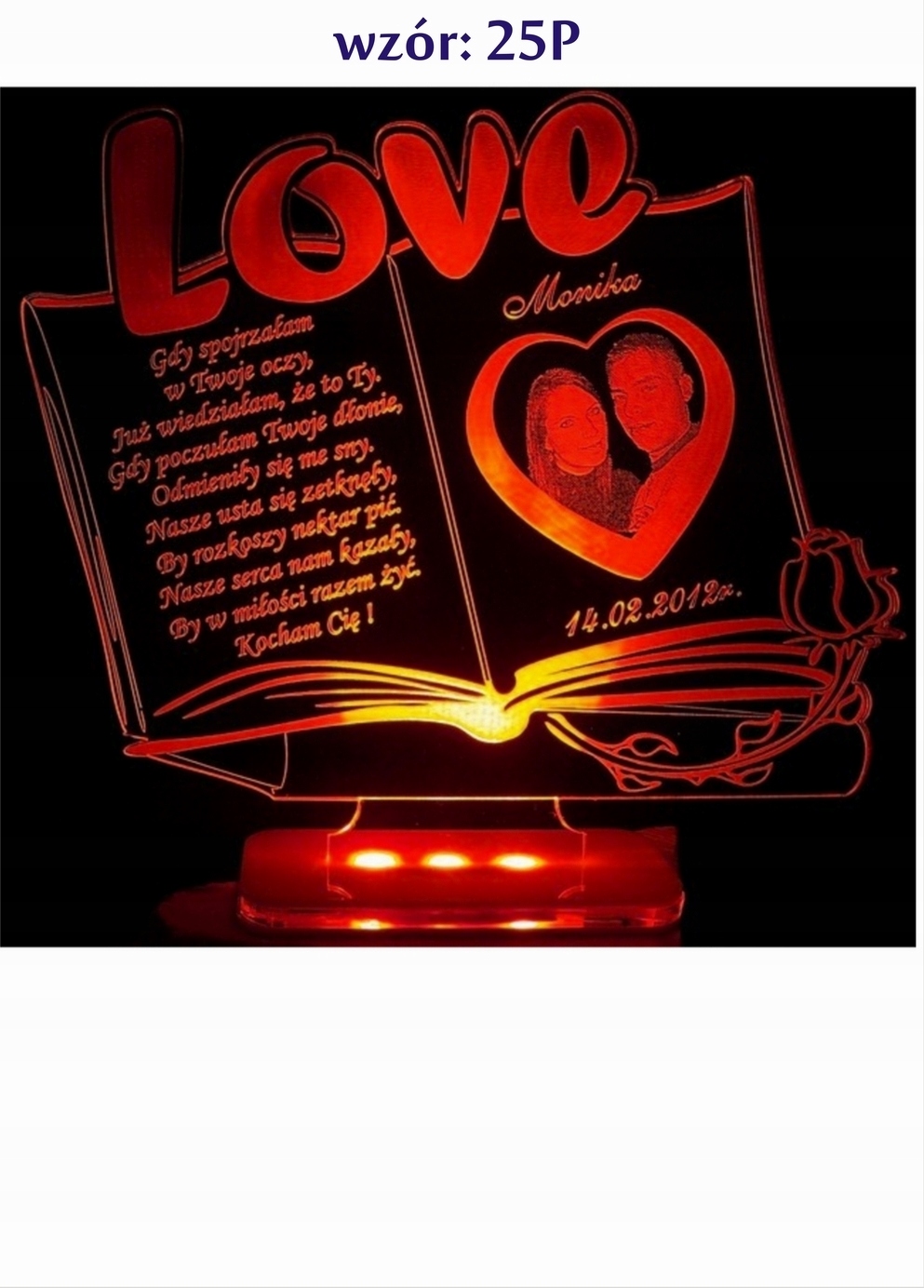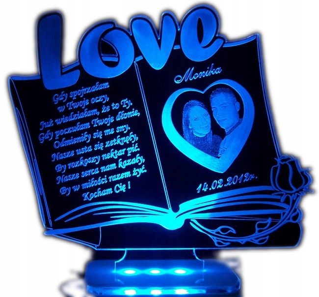WALENTYNKI PODŚWIETLANA STATUETKA Z ZDJĘCIEM LED
