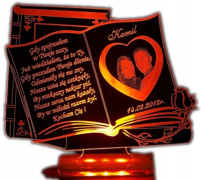 WALENTYNKI PODŚWIETLANA STATUETKA Z ZDJĘCIEM LED