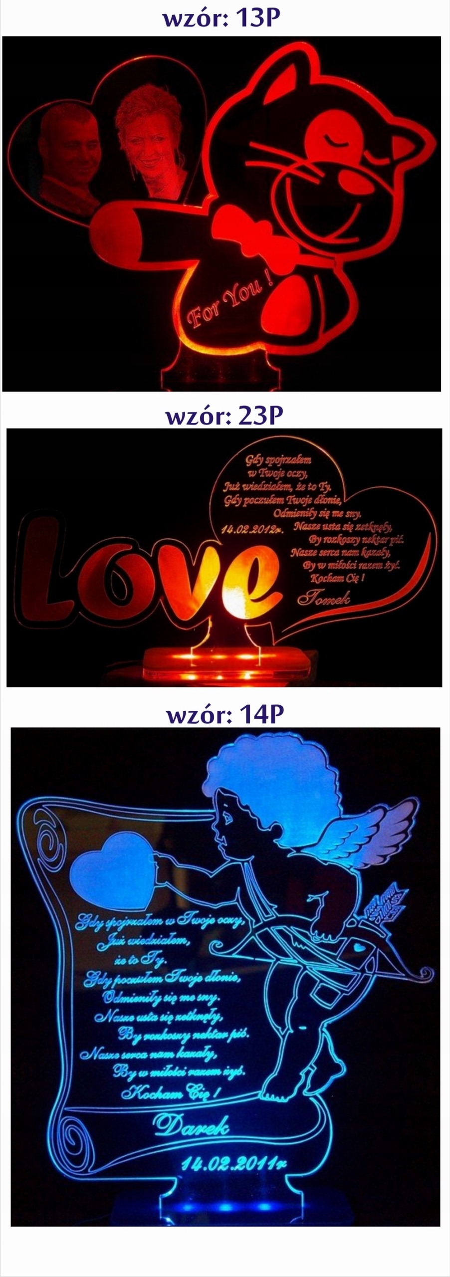 WALENTYNKI PODŚWIETLANA STATUETKA Z ZDJĘCIEM LOVE