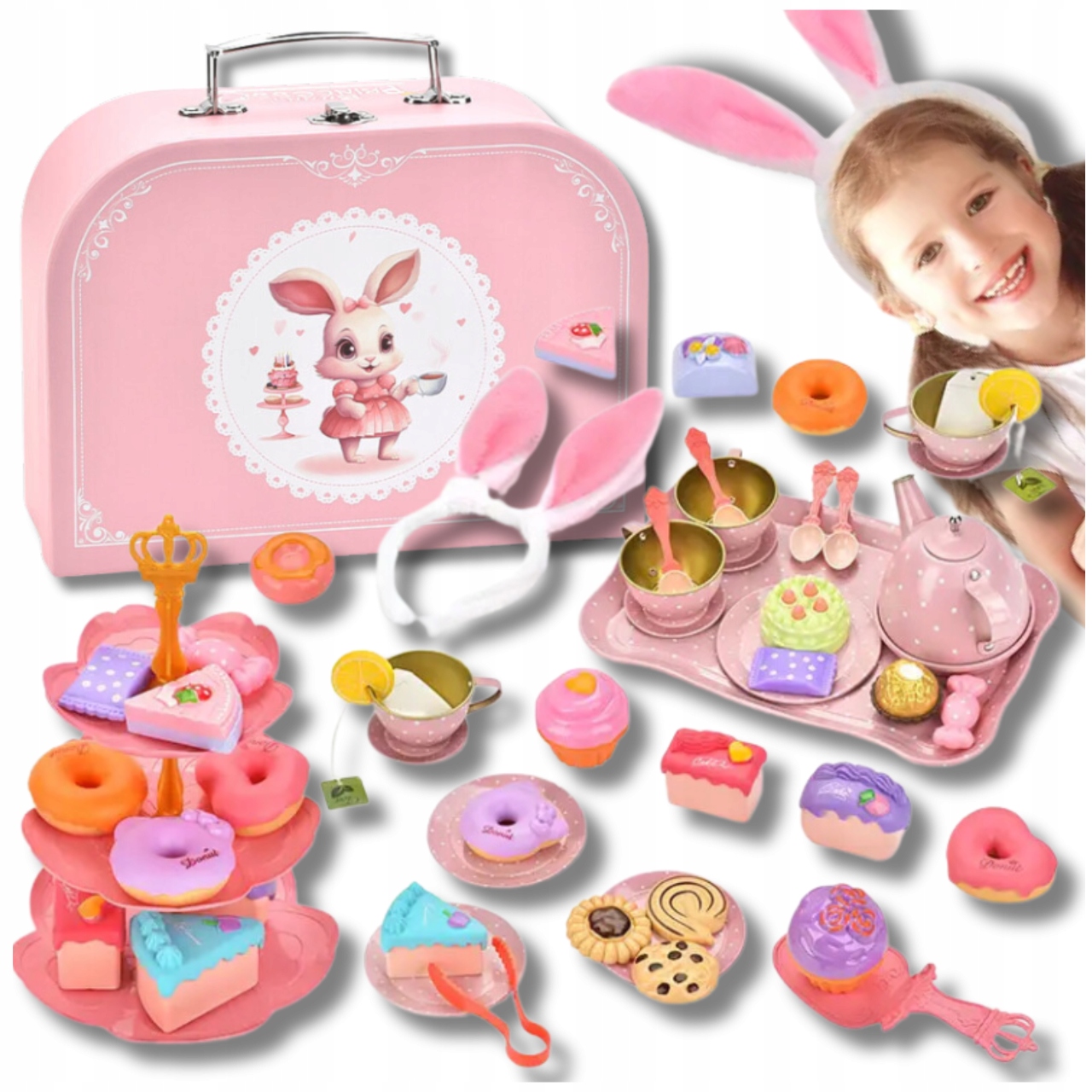 WALIZKOWY ZESTAW HERBATOWY ZABAWKOWY DLA DDZIEWCZYNEK ZABAWAW DOM