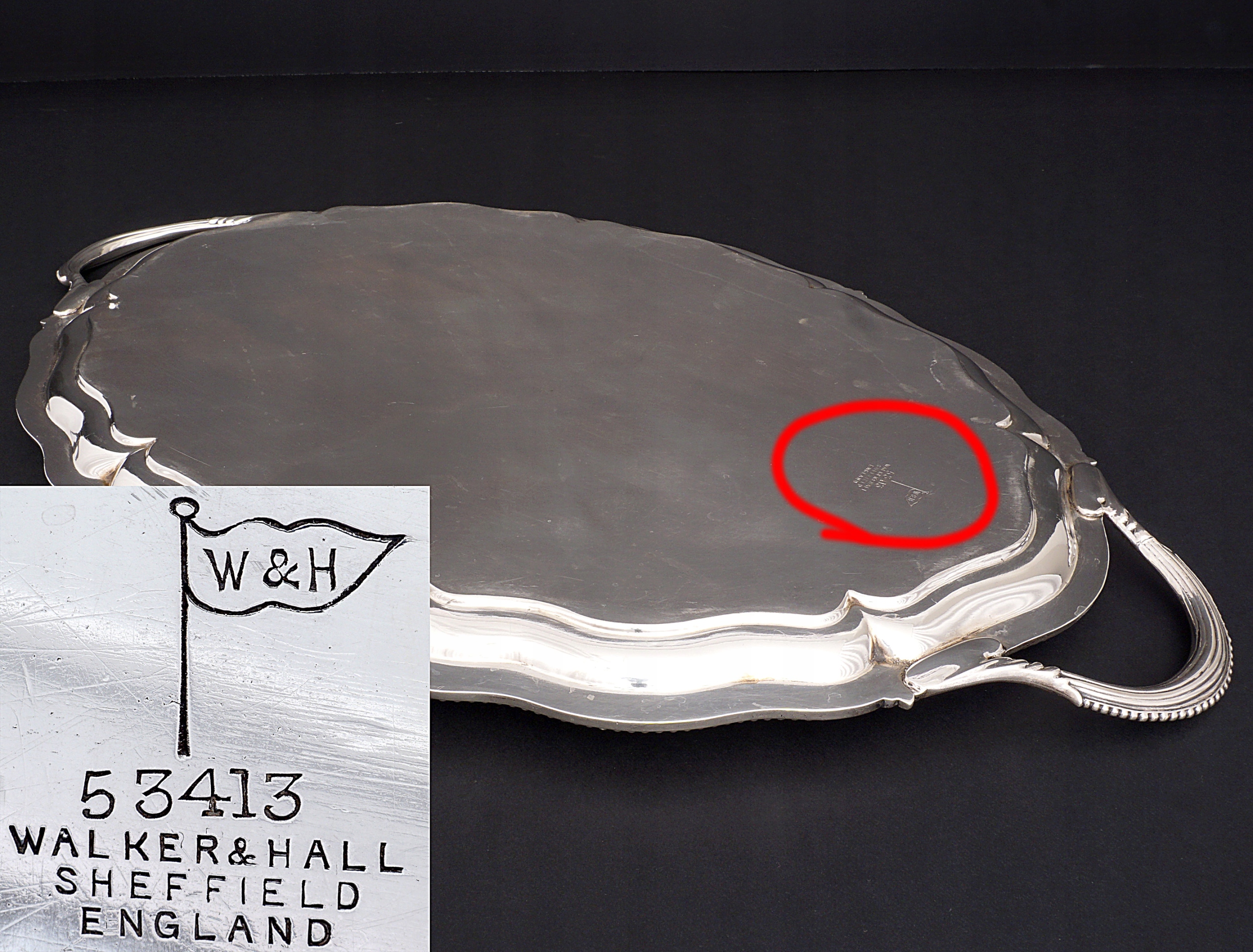 Уокер Холл 1897 г. - СЕРЕБРЯНЫЙ РЕЗНОЙ ПОДНОС С ДВУМЯ СЛУШАМИ - 55 см - 1,85 кг.