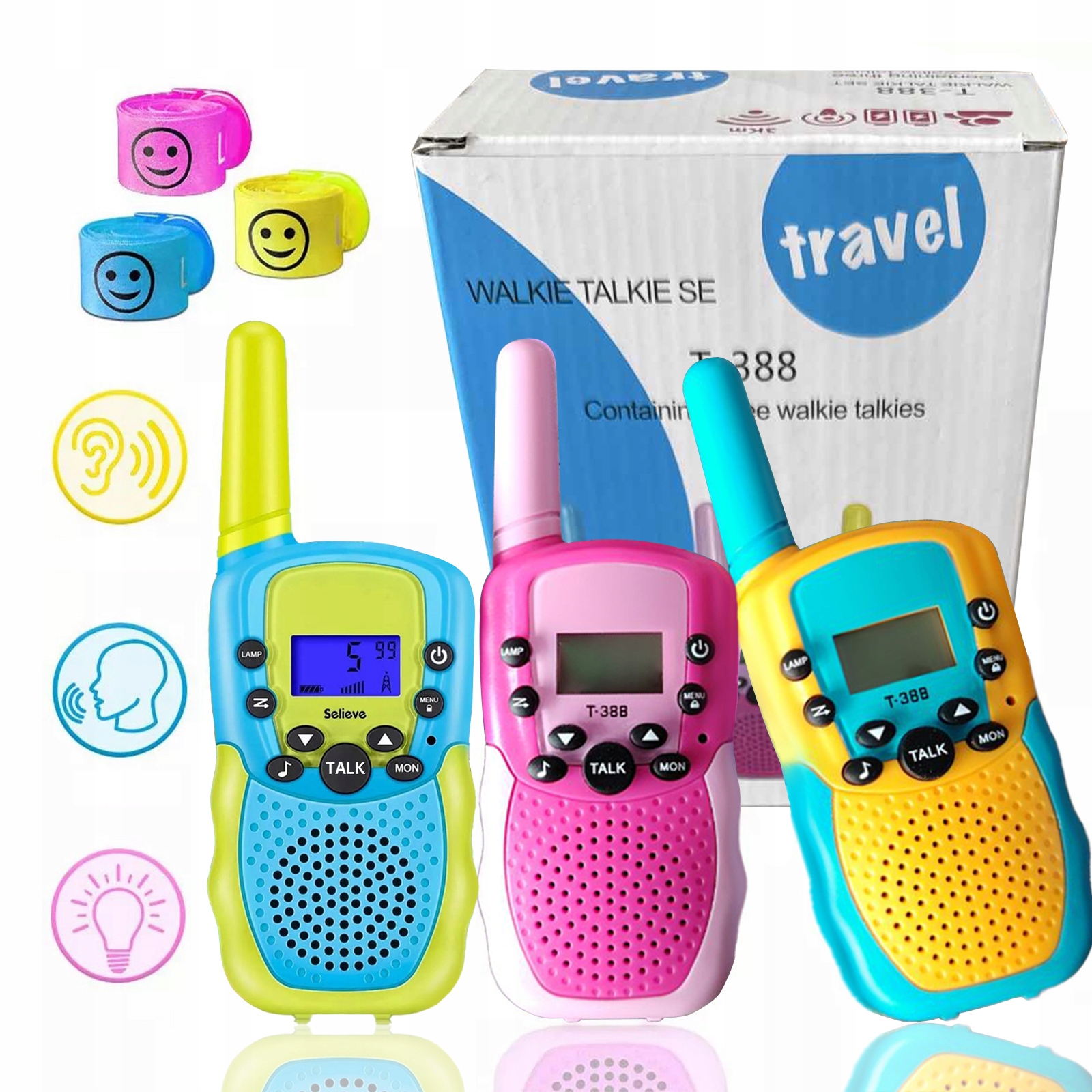 РАЦИЯ ДЛЯ ДЕТЕЙ 3 ШТ. ДИАПАЗОН ДО 3 КМ ЖК-ФОНАРИК ИДЕАЛЬНЫЙ ПОДАРОК