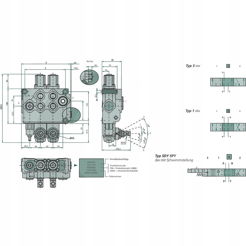 Walvoil Моноблочний гідравлічний розподільник SD11-1-P-18L-AET