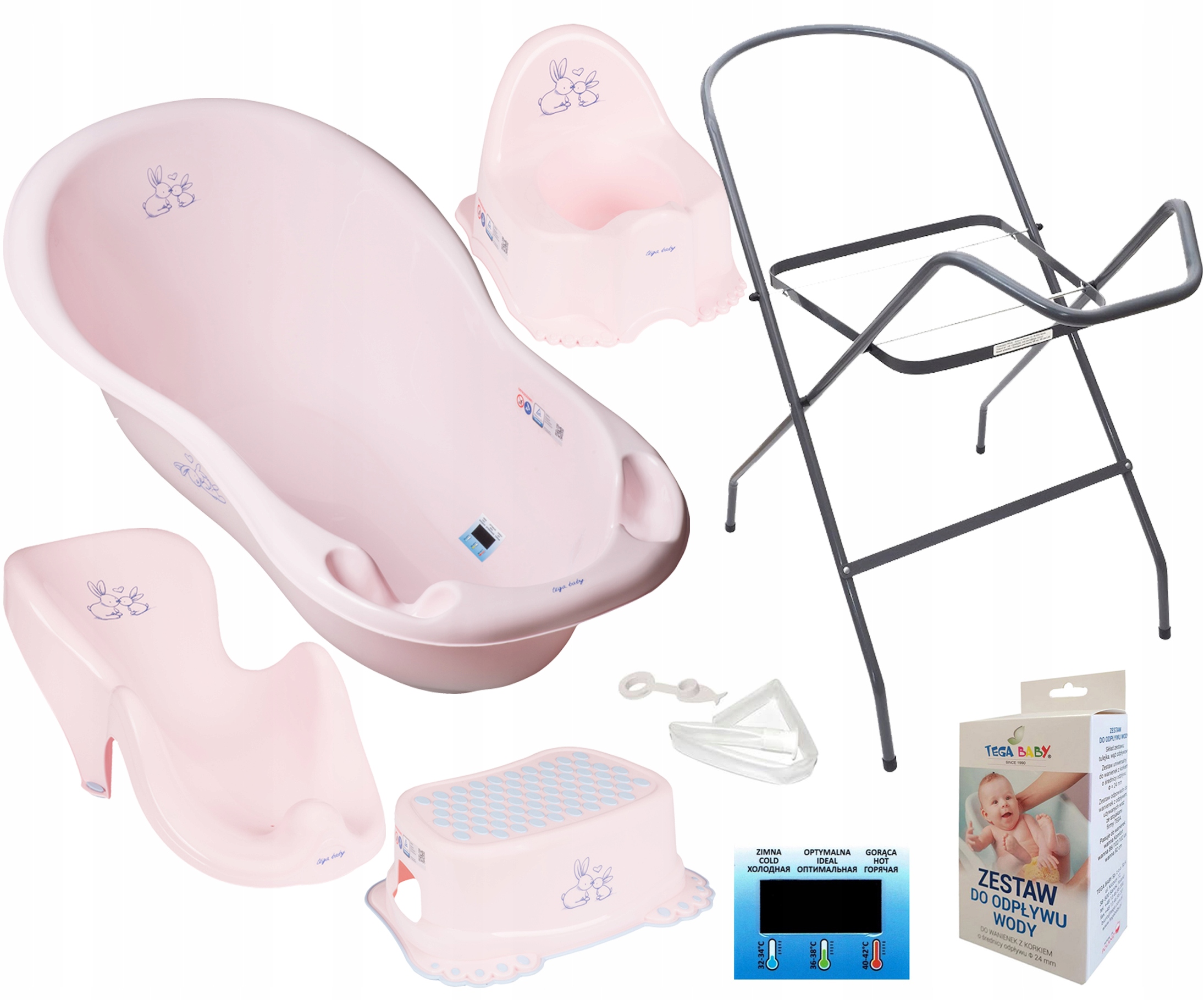 WANNA DLA DZIECKA TEGA "ZESTAW 8w1" WANIENKA TERMOMETR STOJAK + AKCESORIA