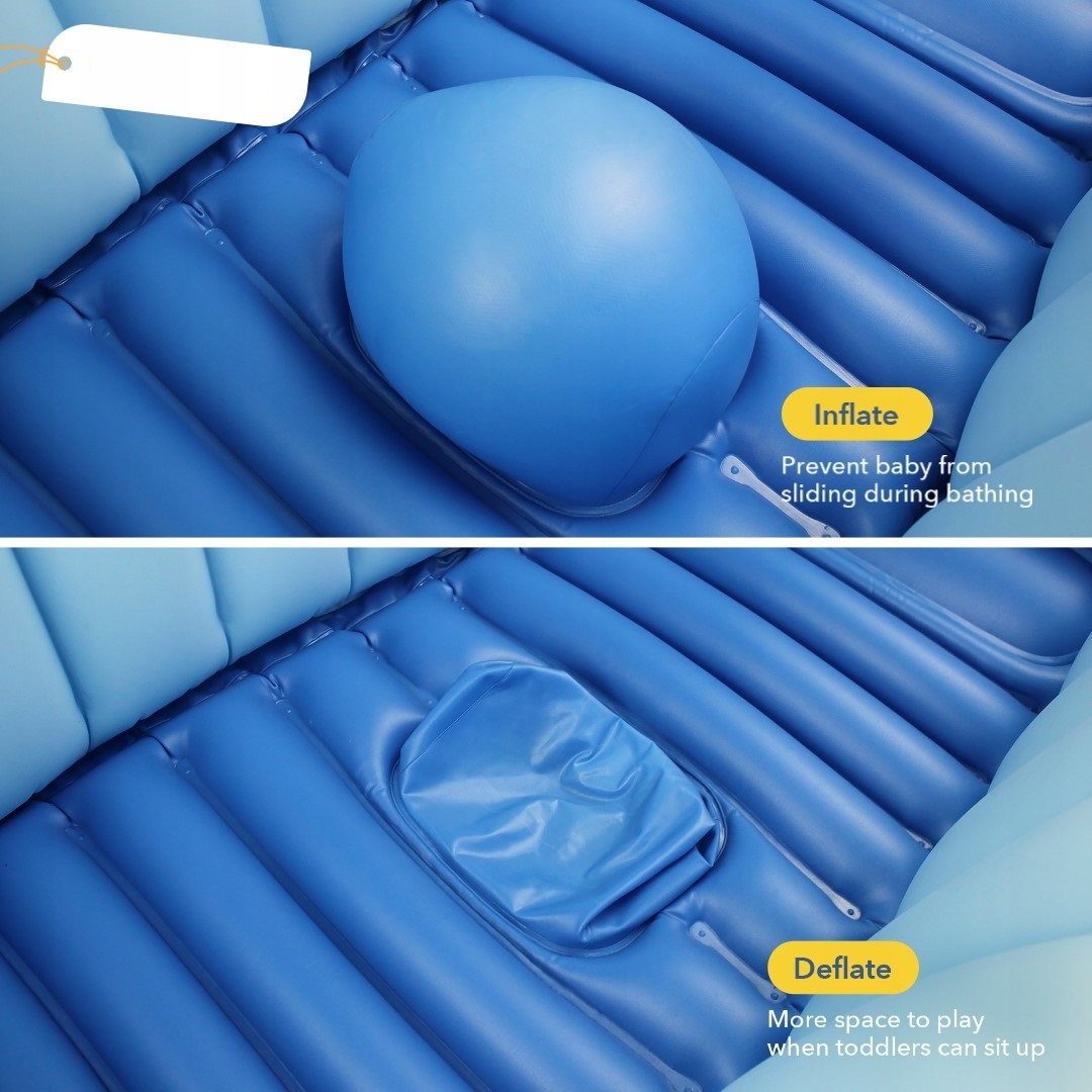 Надувная ванночка идеально подходит для путешествий с малышом в качестве дорожной ванночки. Такая дополнительная ванна – отличный способ сэкономить место дома, поскольку в сложенном виде она занимает мало места. Надувную детскую ванночку можно также использовать как мини-бассейн для водных игр вашего ребенка в саду, на балконе или на пляже. Мягкие бортики обеспечат безопасность малыша во время купания. Ванна также имеет мягкое дно, что снижает риск ударов. После сдувания его можно сложить до небольших размеров, что значительно облегчает его хранение или транспортировку в путешествии.
