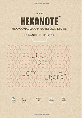 HEXANOTE - Блокнот с шестиугольными диаграммами DIN A5 - Органическая химия: 110-страничный блокнот с шестиугольной миллиметровой бумагой для рисования структур органической химии