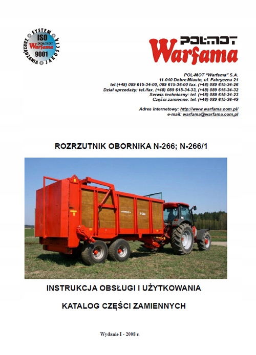 Warfama N-266, N-266/1 - інструкція користувача, каталог запчастин до розкидача