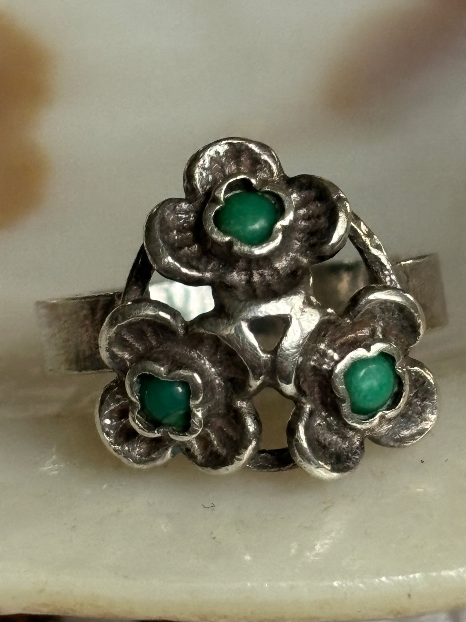 Warmet pierścionek stary srebrny niezapominajki turkus
