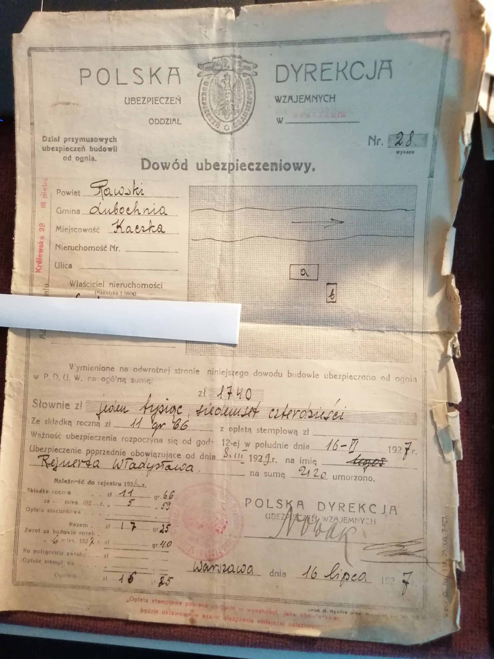 WARSZAWA 1927 POLSKA DYREKCJA UBEZPIECZEŃ WZAJEMNYCH -MIEJSCOWOŚĆ - KACZKA.