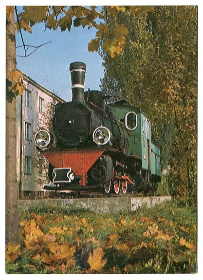 Узкоколейный паровоз Пю 4 - 741 установлен в качестве памятника на территории железной дороги в Варшаве - Одоланы ::: старая открытка, не ходит в обращении