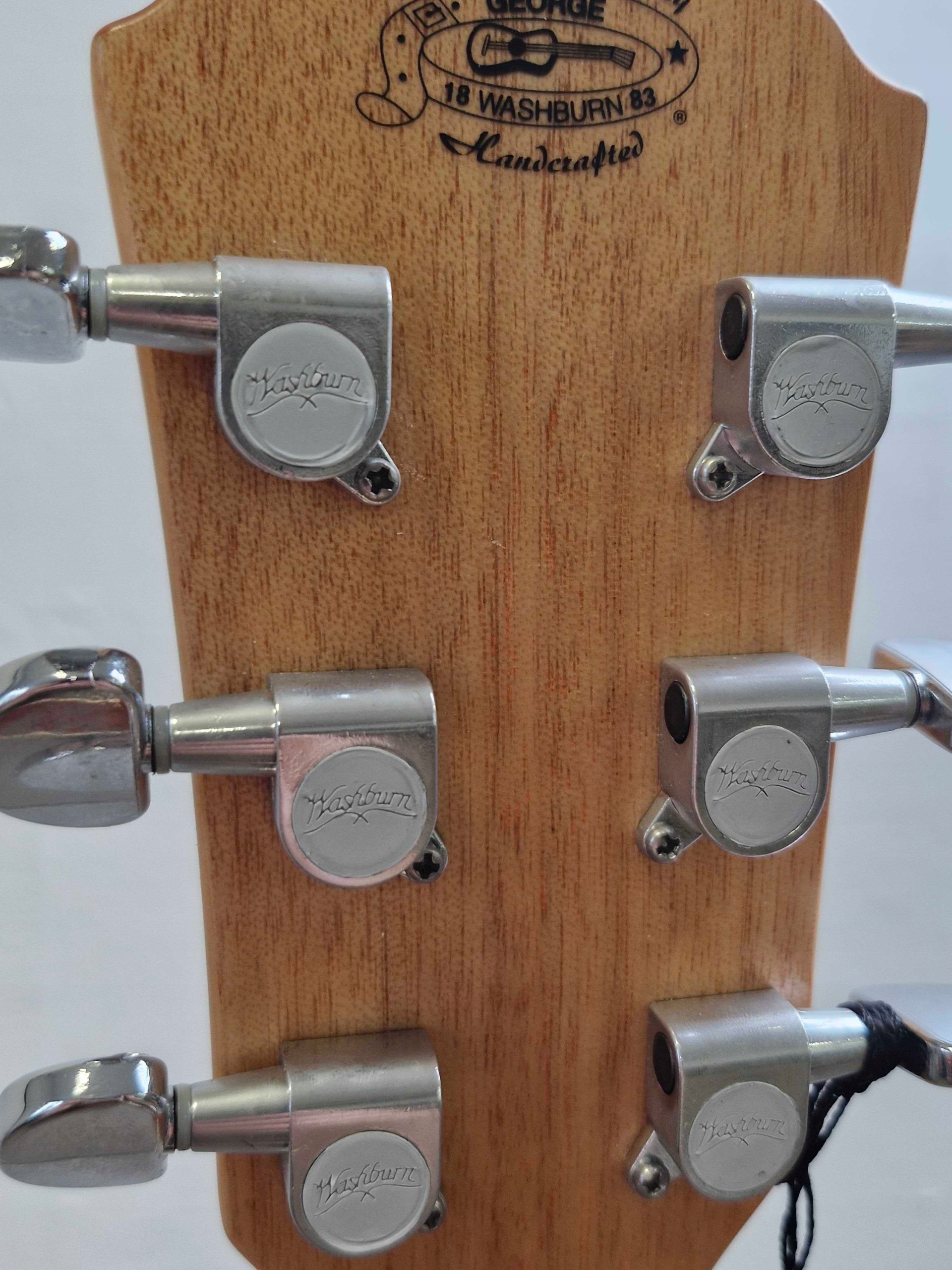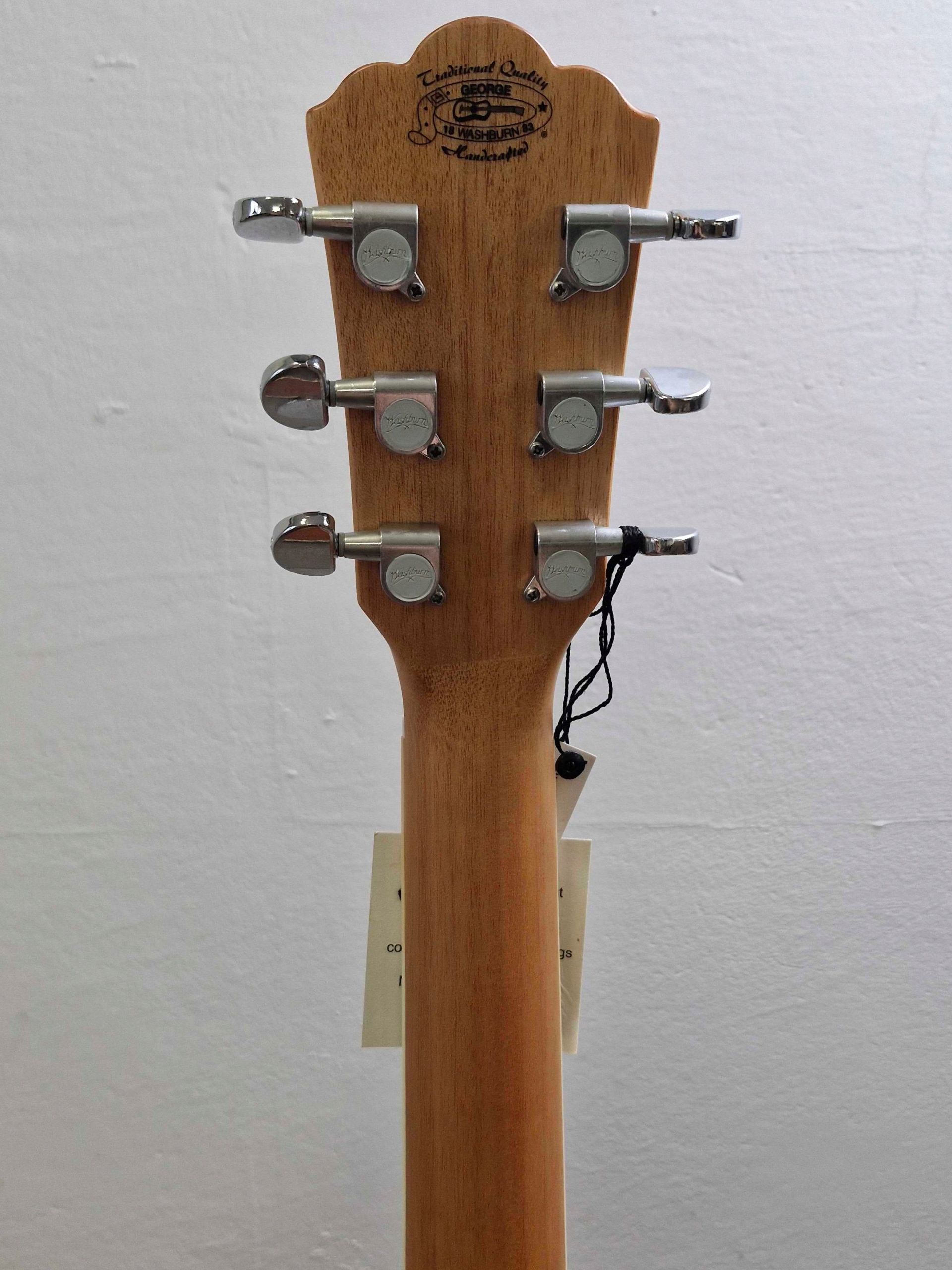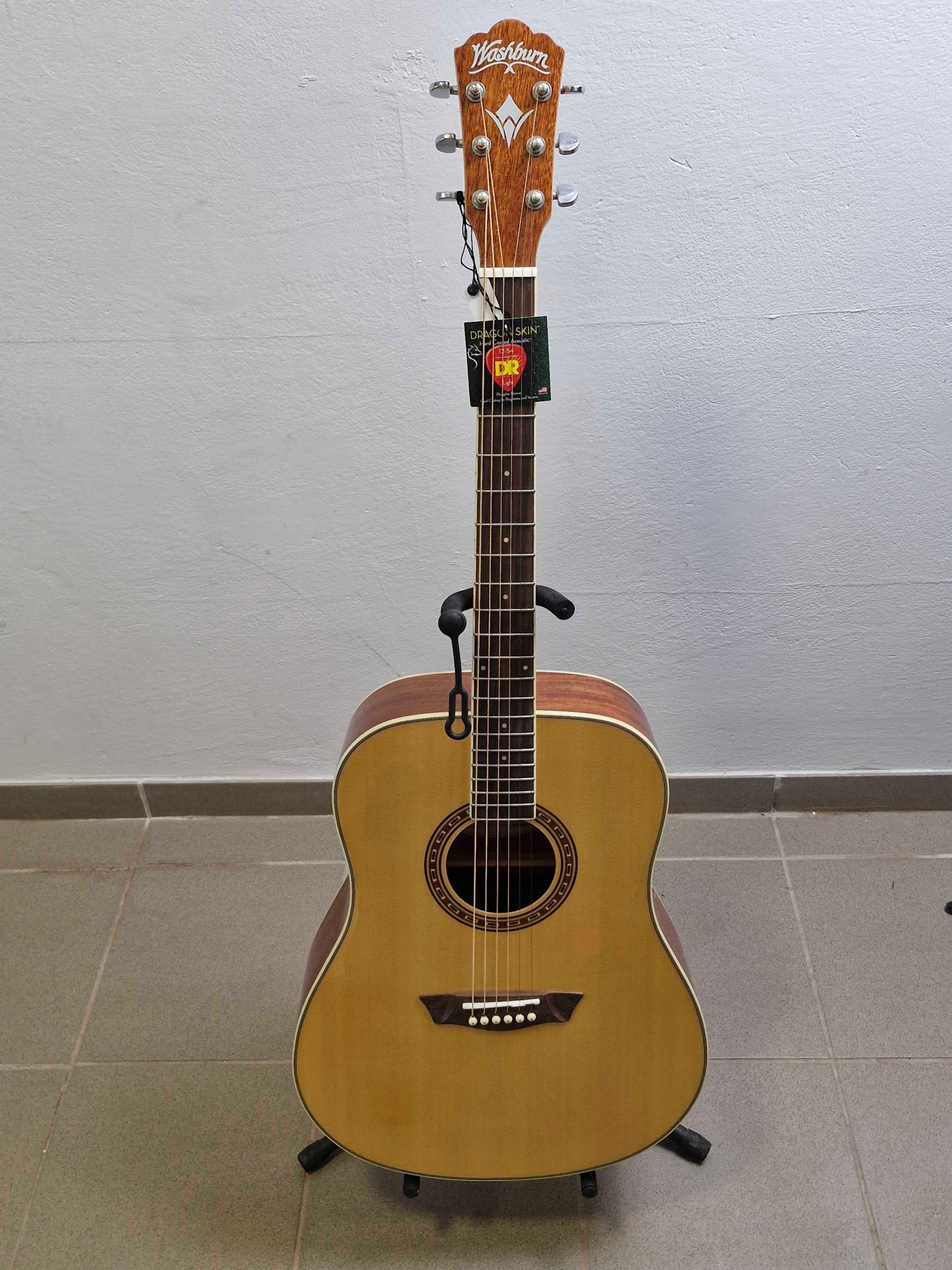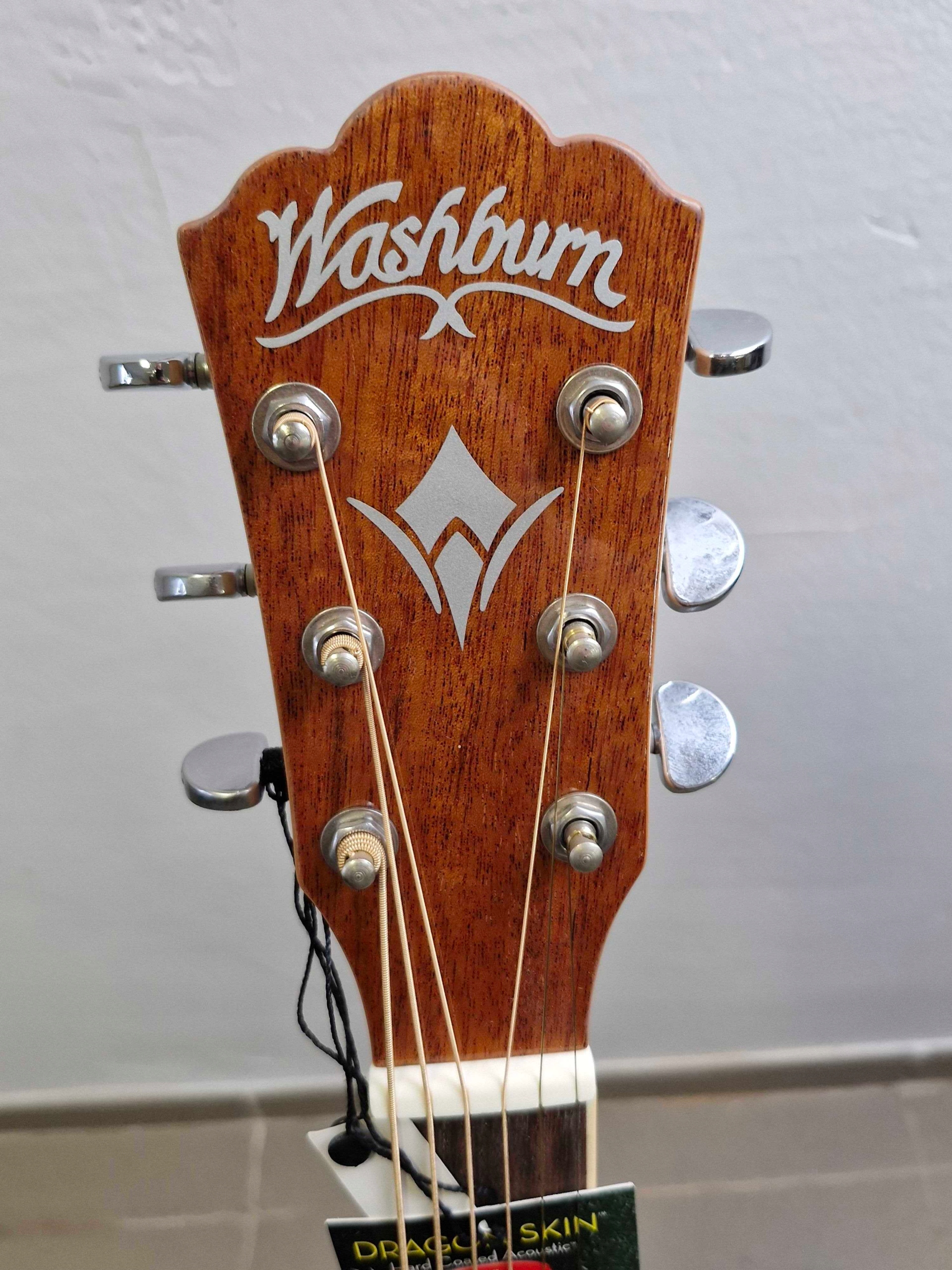 акустическая гитара Washburn WD7S-AU оснащен хромированным, нажатым давлением Стоими прикрепления и положениями, облегчающими ориентацию на гриффине. Это гитара дредноута со стандартной шкалой 650 мм и нулевой пороговой шириной 43 мм. На гриф -пакете 20 порогов. Этот вечный музыкальный инструмент особенно подходит для начинающих и случайных гитаристов.