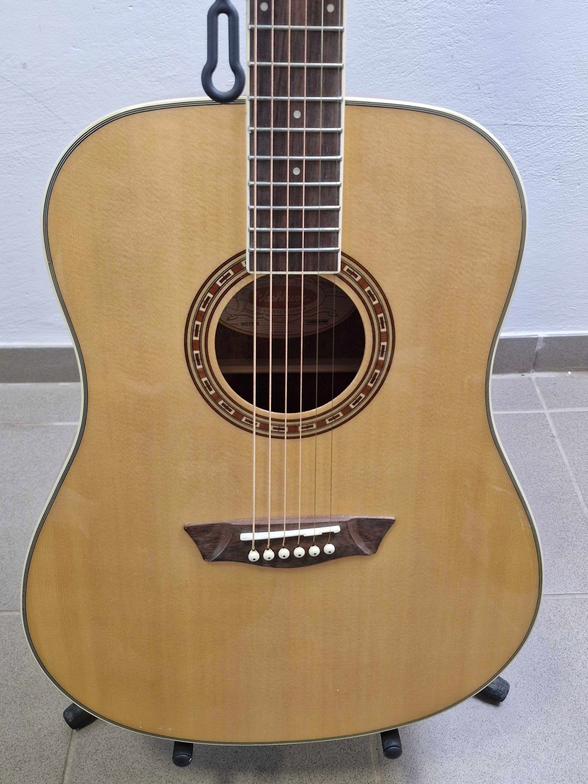 Его внешний вид относится к западному стилю и прекрасно дополняет его традиционные элементы, украшенные в виде отделки и более выдающейся розетки. Васберн WD7S-aucustic Guitar имеет большой резонансный корпус, изготовленный из твердой ели древесины .