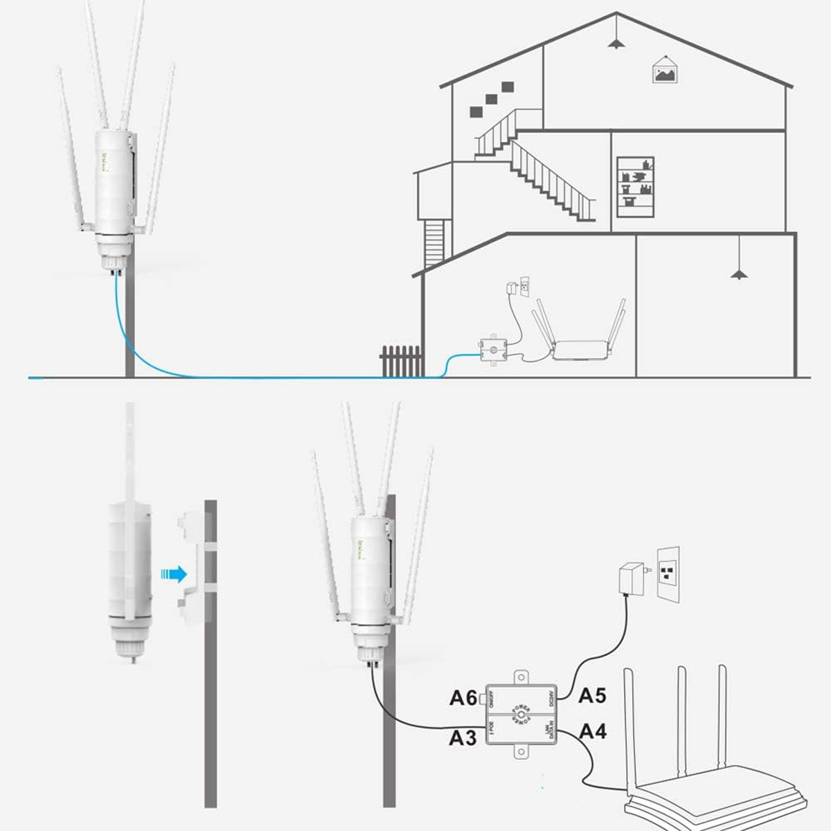 Wavlink AC1200 Мощный уличный ретранслятор, модель с пассивным PoE, 1200 Мбит/с