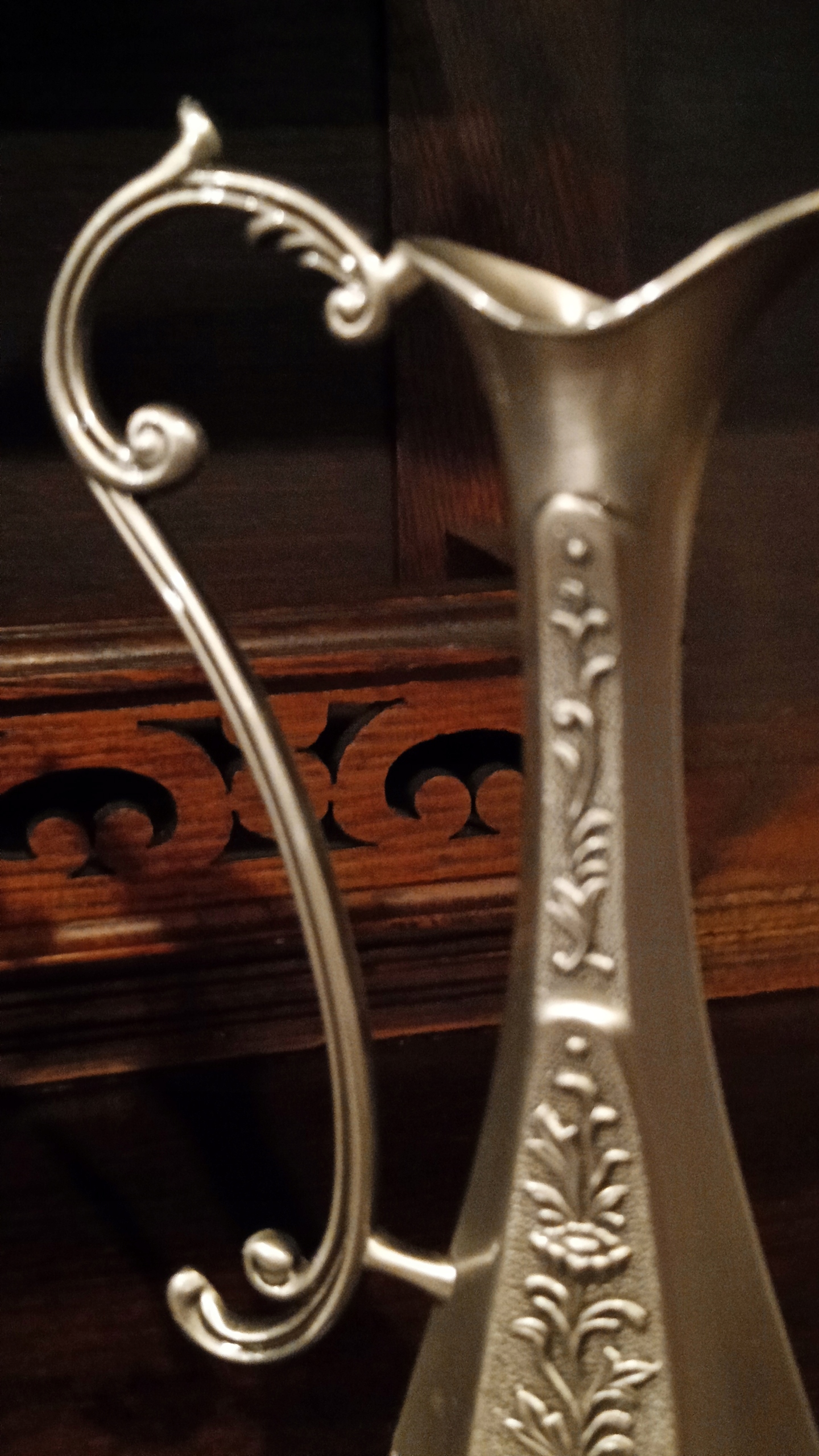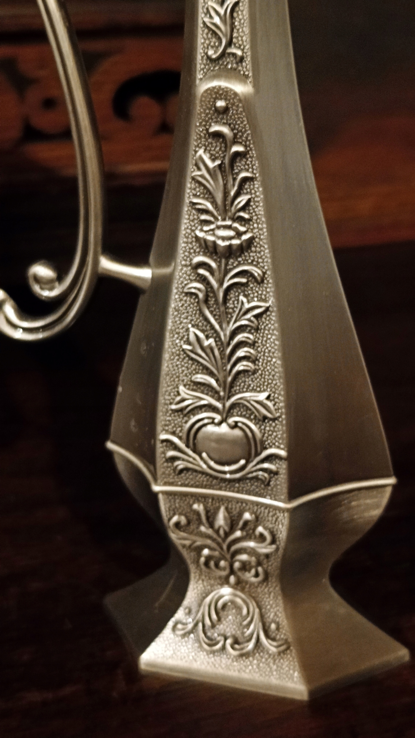 Wazon Stylowy Metal Flakon Dekoracja Ozdoba Stare Srebro Cyna