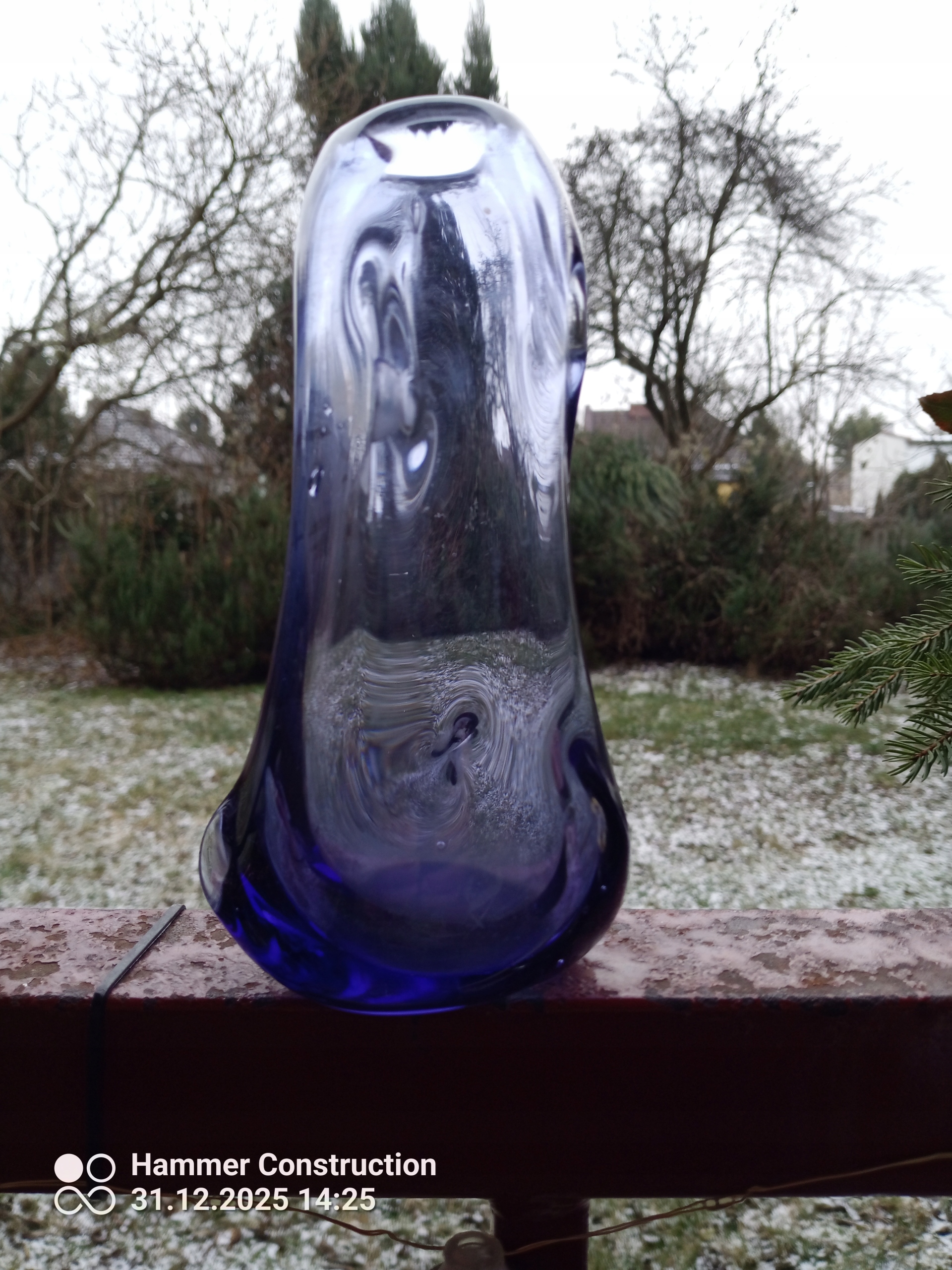 Модель вазы/бутылки Glu из толстостенного прессованного стекла, окрашенного в массе в синий цвет.