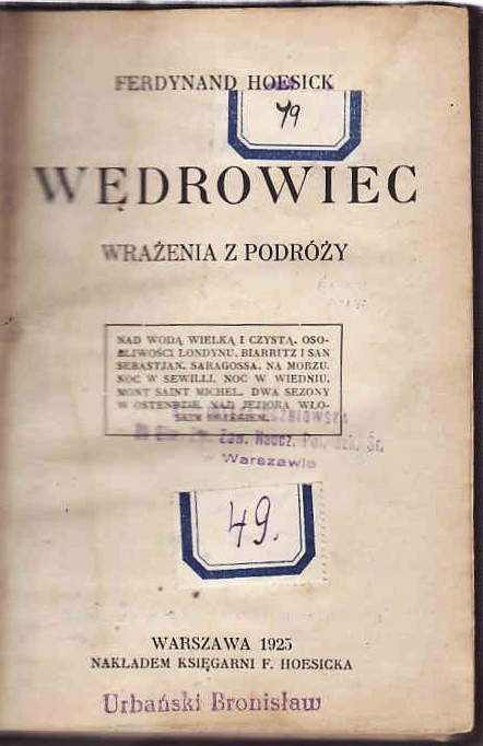 WĘDROWIEC, WRAŻENIA Z PODRÓŻY - F. HOESICK