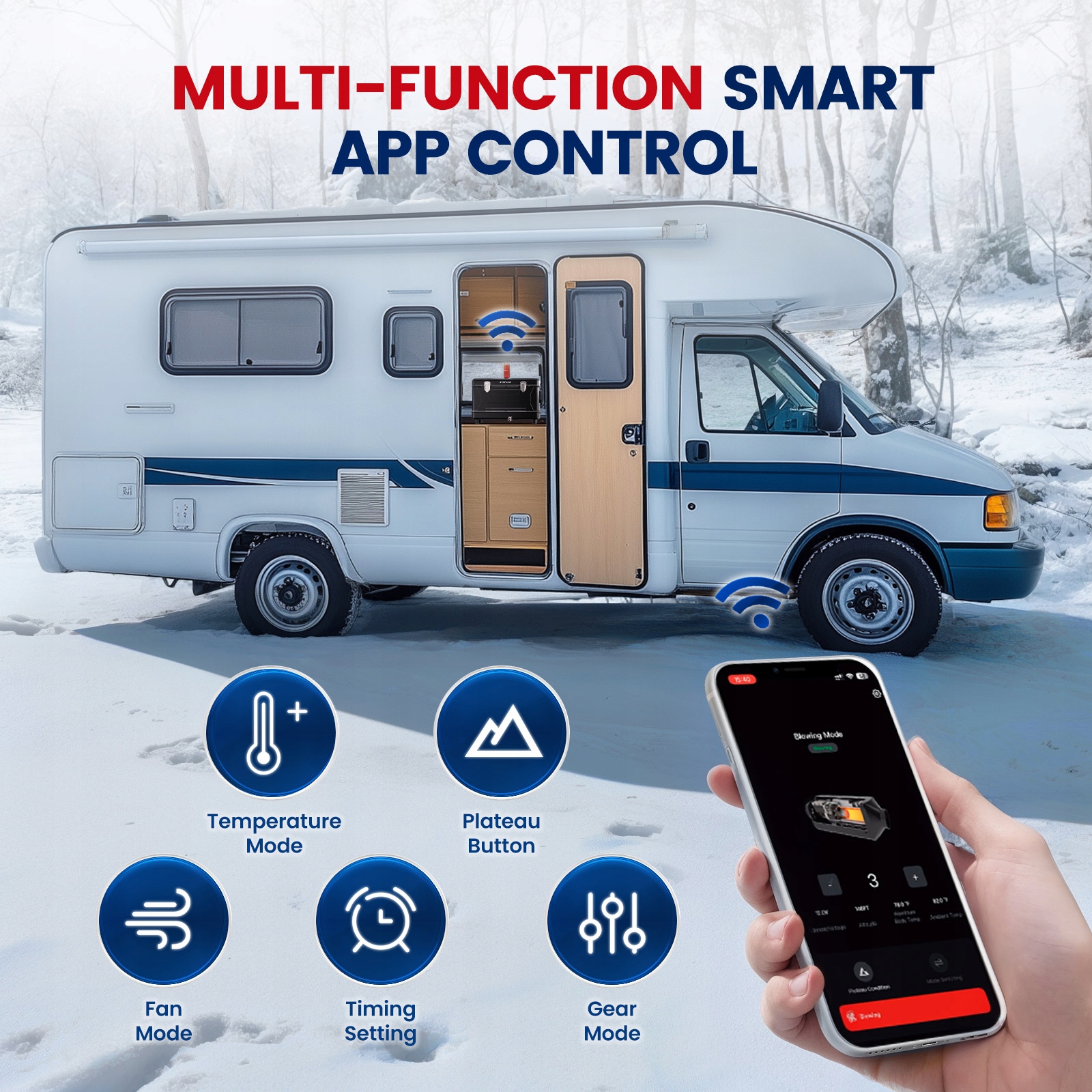 Интеллектуальное управление Bluetooth с режимом высоты: контролируйте температуру, настраивайте параметры и переключайтесь в режим высоты с помощью приложения Bluetooth. Режим высоты обеспечивает оптимальное сжигание топлива на больших высотах, что делает его идеальным для поездок в горы.