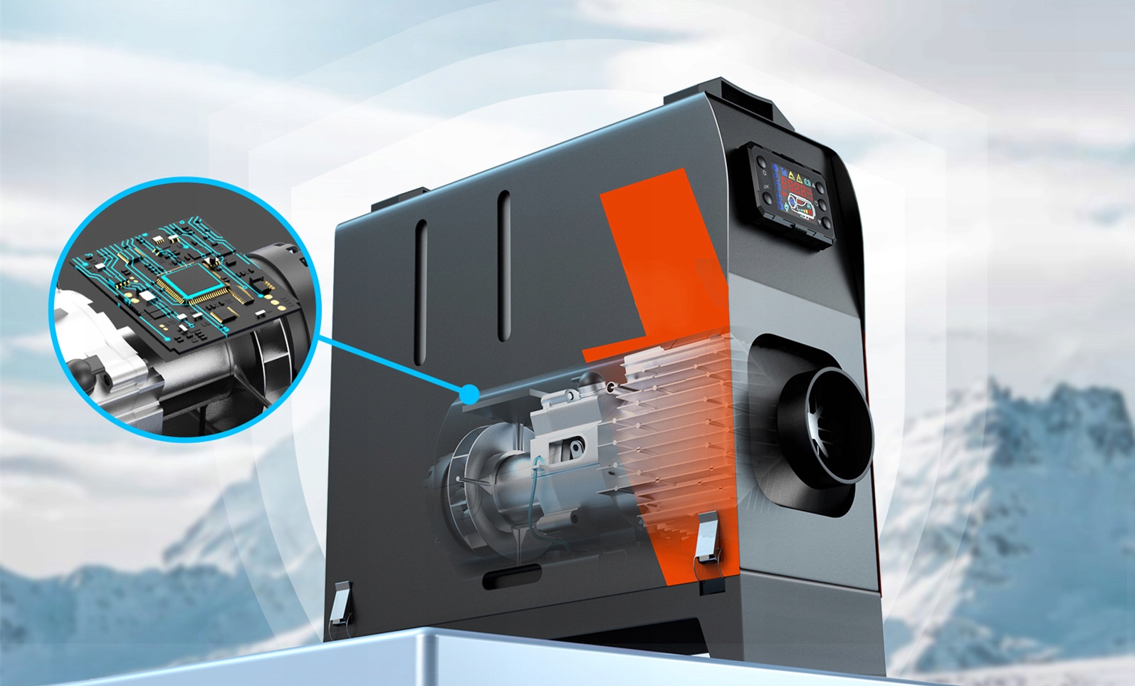- 9. Может удалить иней с окна, экологически чистый продукт, низкий уровень выбросов, низкий расход топлива; Выбросы выхлопных газов отопителя соответствуют требованиям Евро IV, компактный дизайн, простота установки