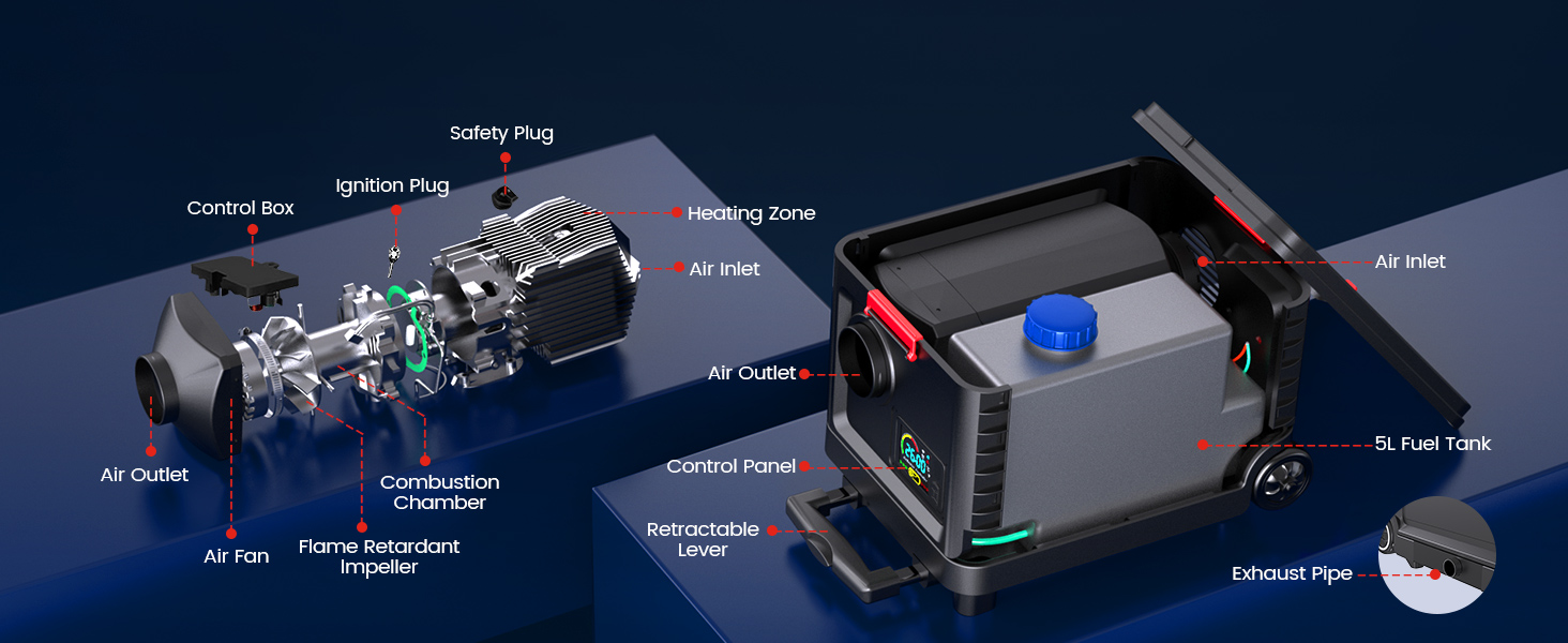 ПАРКОВОЧНОЕ ОБОГРЕВАНИЕ WEBASTO ТИПА 5–8 кВт, 230 В, 12/24 В, ДИЗЕЛЬНЫЙ ОБОГРЕВАТЕЛЬ С ЖК-дисплеем
