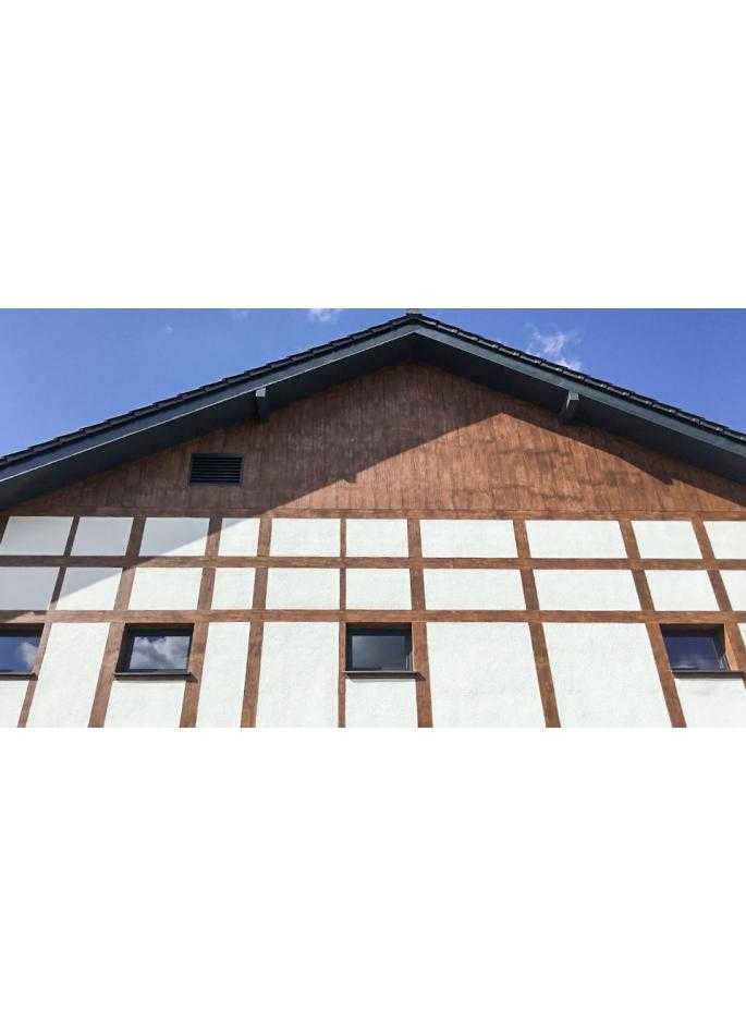 Инструкция по выполнению:Смешайте штукатурку тихоходной электромиксером. Имитация фасадной доски: штукатурка наносится в два слоя, первый слой шпателем из нержавеющей стали толщиной около 1,0 мм, ровно. После первоначального схватывания (4-6 часов) отшлифуйте следы, оставленные мастерком. Нанести второй слой толщиной около 1,0 мм – нанести на обрабатываемую поверхность примерно на 15-20 минут. На свежей штукатурке нарисуйте специальным инструментом узоры зерен, перемещая их по поверхности, одновременно меняя положение штампа вверх и вниз. После первоначального связывания используйте острый инструмент (например, плоскую отвертку), чтобы вытянуть стыки между досками от забора. После полного застывания штукатурки (около 12 часов) отшлифуйте поверхность, чтобы выровнять рисунок волокон, и удалите более крупные «заусенцы». Покрасьте подготовленную поверхность акриловой морилкой weber.ton azure один или два раза, используя губку или без нее, в зависимости от ожидаемого конечного эффекта.