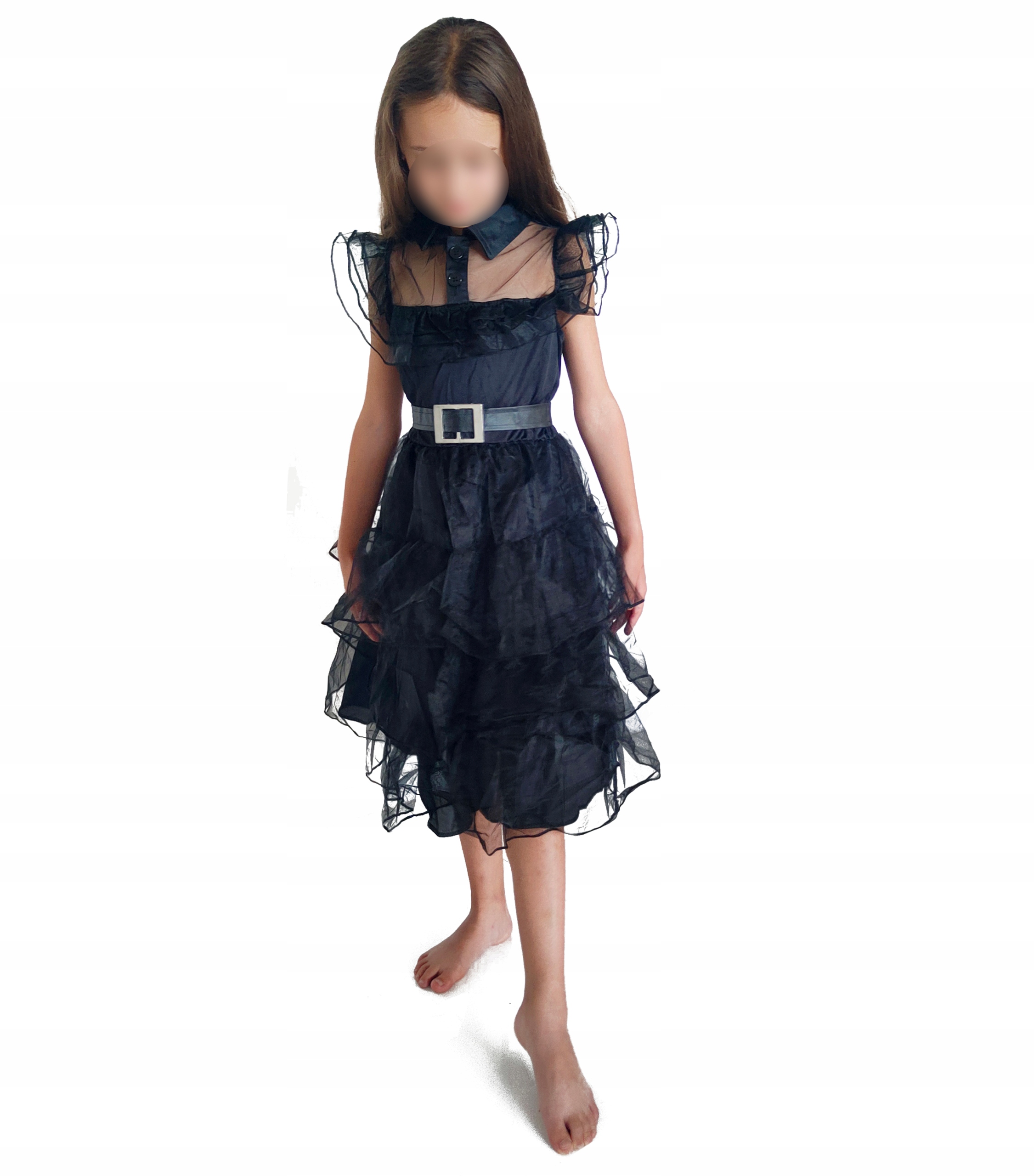 WEDNESDAY ADDAMS OUTFIT DRESS + WIG 116/128 M