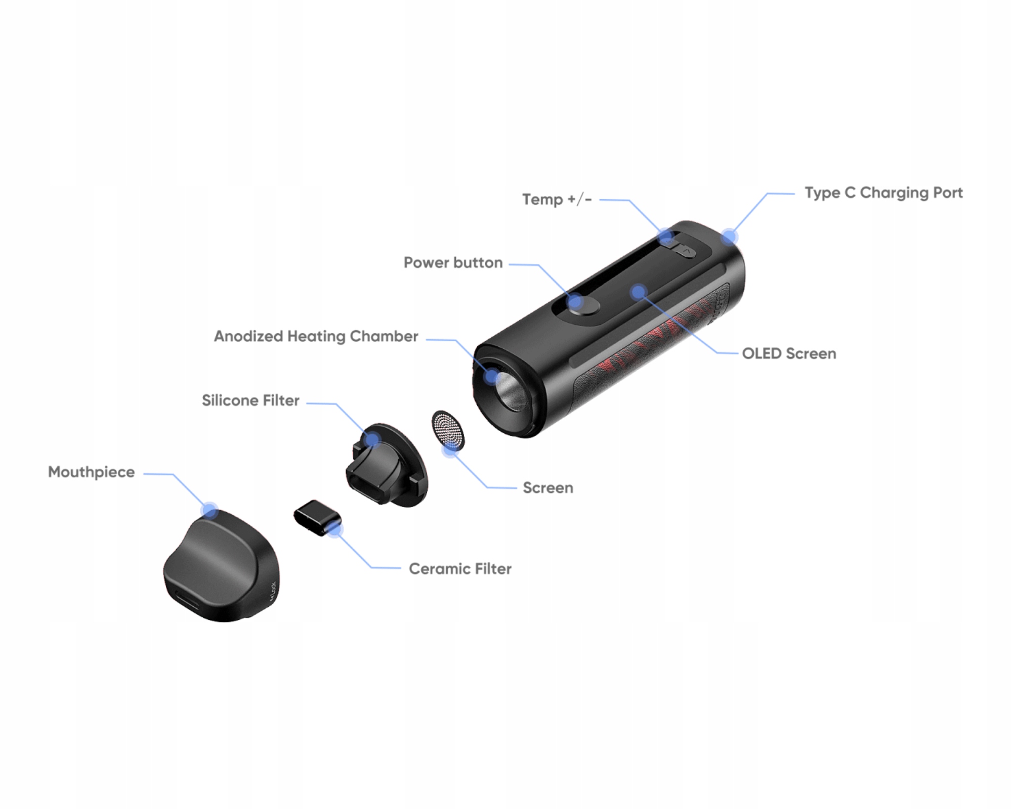 - керамический фильтр, который эффективно предотвращает попадание частиц трав в мундштук и в то же время пропускает высококачественный ароматический пар.
