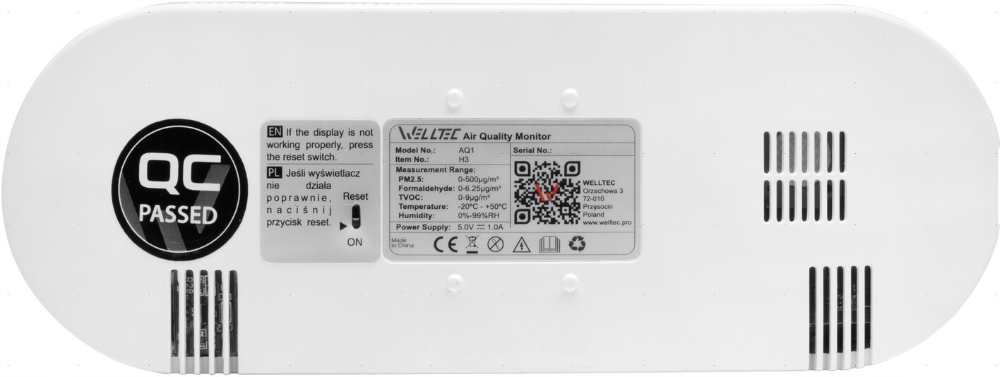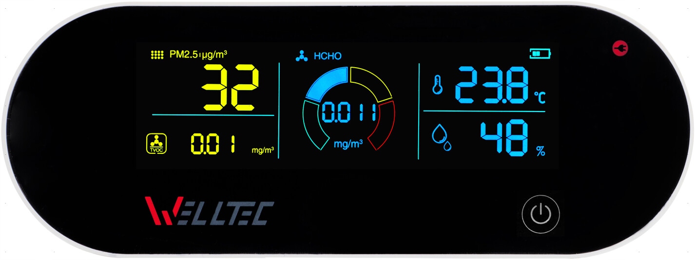 WELLTEC AQ1 МЕТР ЯКОСТІ ПОВІТРЯ - ДЕТЕКТОР СМОГУ PM2.5 HCHO TVOC