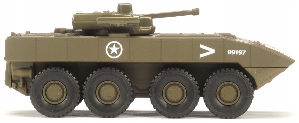 Отличное пополнение коллекции моделей поездов в масштабе 1:34-1:39 в виде боевой машины с вращающейся башней. Машина имеет вращающиеся колеса на резиновых шинах.
