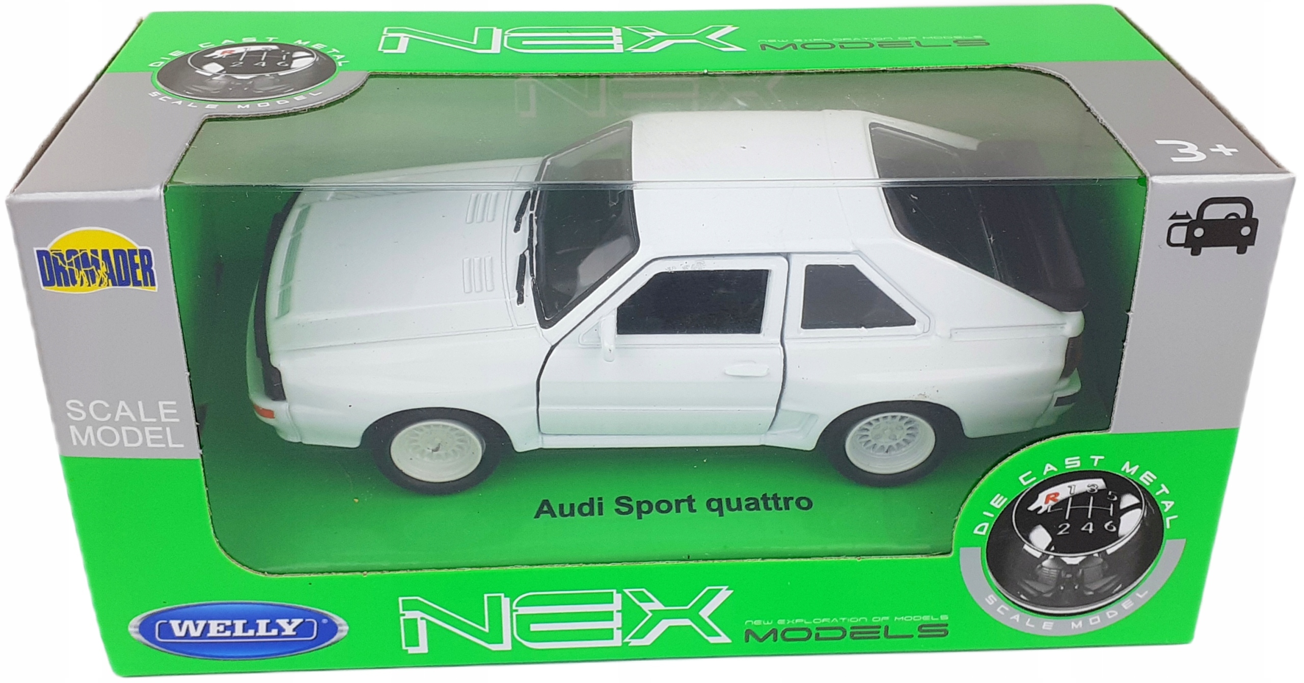 Модель AUDI SPORT QUATTRO выполнена из металлических и пластиковых элементов в масштабе 1:34-39.